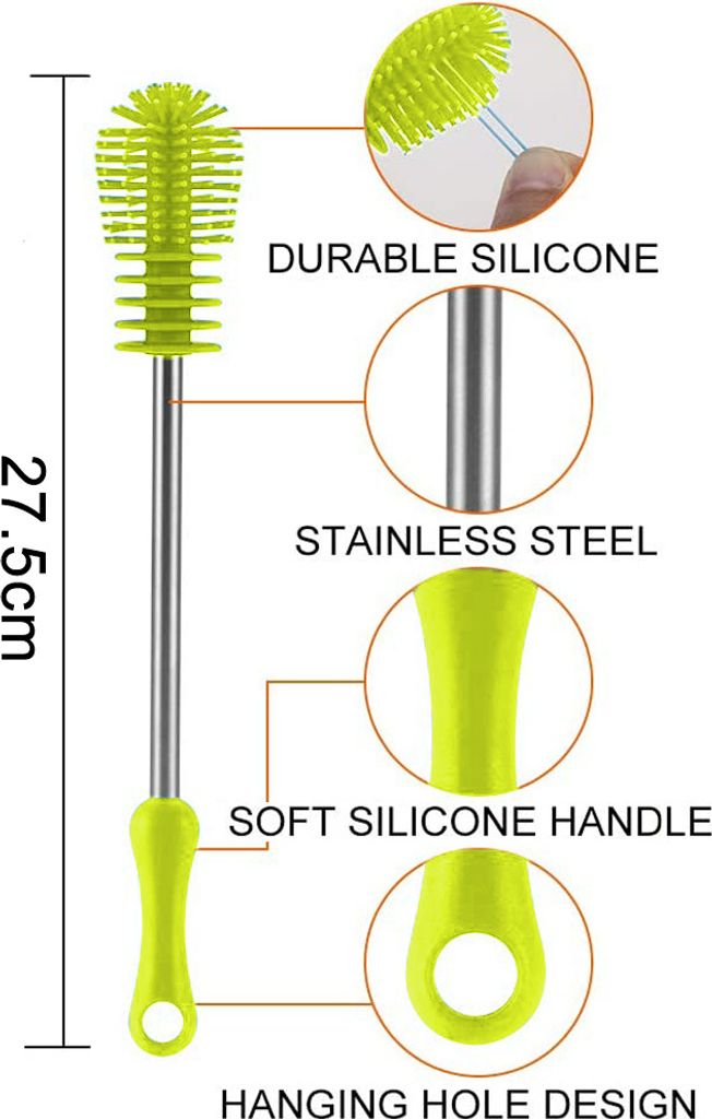 Endlich alle Flaschen richtig sauber kriegen! Dieses 5-teilige Bürsten-Set von Qisan hat für jede Flasche die passende Bürste. Mit flexiblen Hälsen kommst du auch an die hintersten Ecken von Wasserkochern, Weinkaraffen, Kaffeefiltern und Trinkflaschen. Die verschiedenen Größen (38cm, 33cm, 36cm, 35cm und 23cm) sind perfekt abgestimmt. Die Borsten haben eine höhere Härte und der Edelstahlkern rostet nicht. Einfach in der Spülmaschine reinigen und platzsparend aufbewahren. Nie wieder schmutzige Flaschen oder mühevolles Herumhantieren! Macht das Reinigen zum Kinderspiel und ist ein echter Game-Changer in jeder Küche. Für Familien, Single-Haushalte und alle, die gerne saubere Flaschen haben wollen!