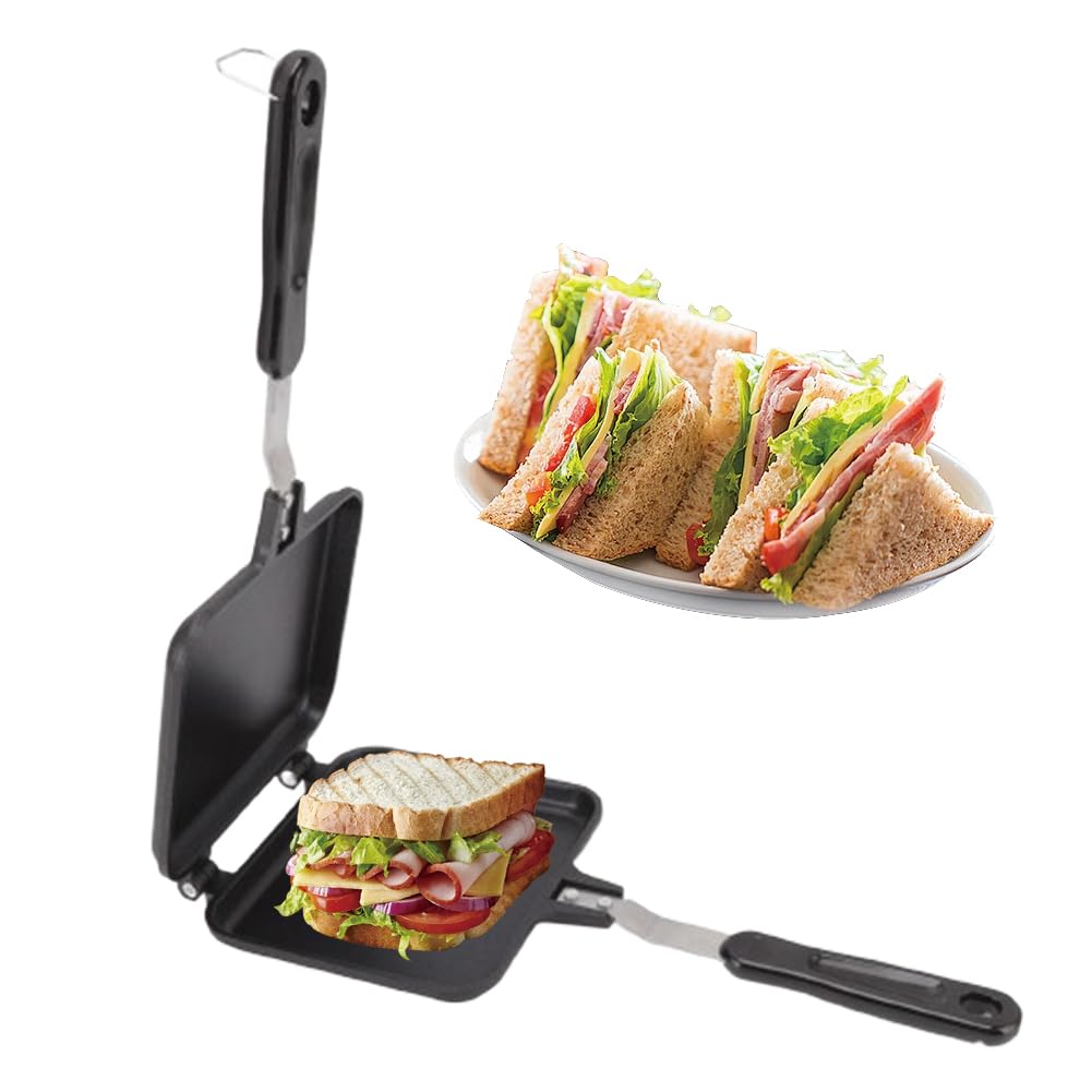 Doppelt braten, halbe Zeit! Diese geniale doppelseitige Sandwichpfanne aus hitzebeständigem Aluminium macht dir knusprige Sandwiches, Waffeln und Toast in Rekordzeit. Mit der super Antihaftbeschichtung brennt nichts an und die Reinigung geht ratzfatz - kein lästiges Schrubben mehr! Die Maße von 13,58x5,91x1,18 Zoll sind perfekt für moderne Küchen und kleine Räume. Der hitzebeständige Griff bleibt immer kühl und der praktische Aufhänger sorgt für platzsparende Lagerung. Ob fürs schnelle Frühstück, den Nachmittagssnack oder Camping-Ausflüge - diese Pfanne ist dein vielseitiger Küchenhelfer. Einfach belegen, zuklappen und warten bis es goldbraun und knusprig ist. Spare Zeit und Energie mit diesem cleveren Küchengerät, das aus wenigen Zutaten eine leckere Mahlzeit zaubert. Perfekt für Singles, Paare oder kleine Familien!