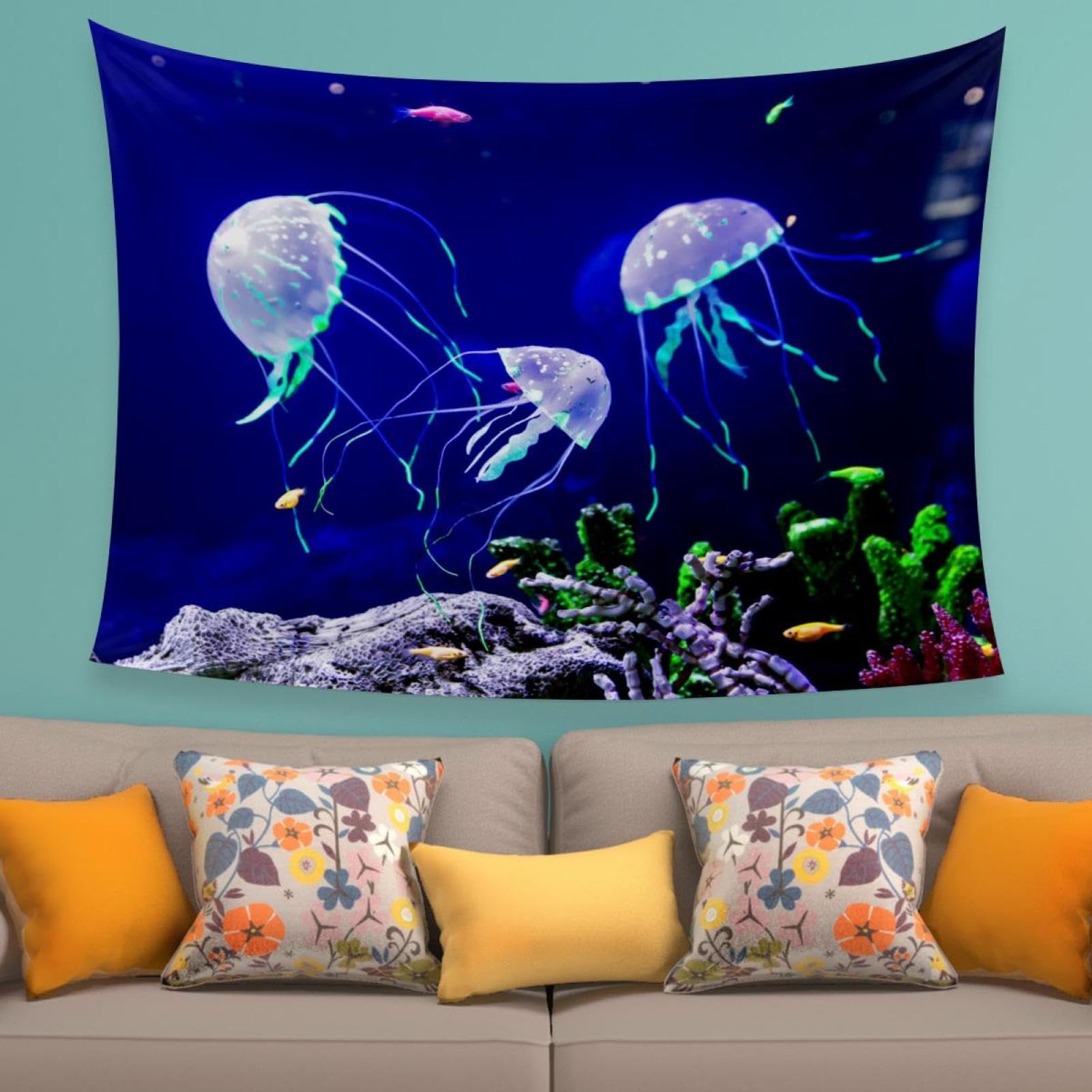 Kaiyun Qualle Wandteppich 100x150cm - Unterwasser Design Für Schlafzimmer Deko