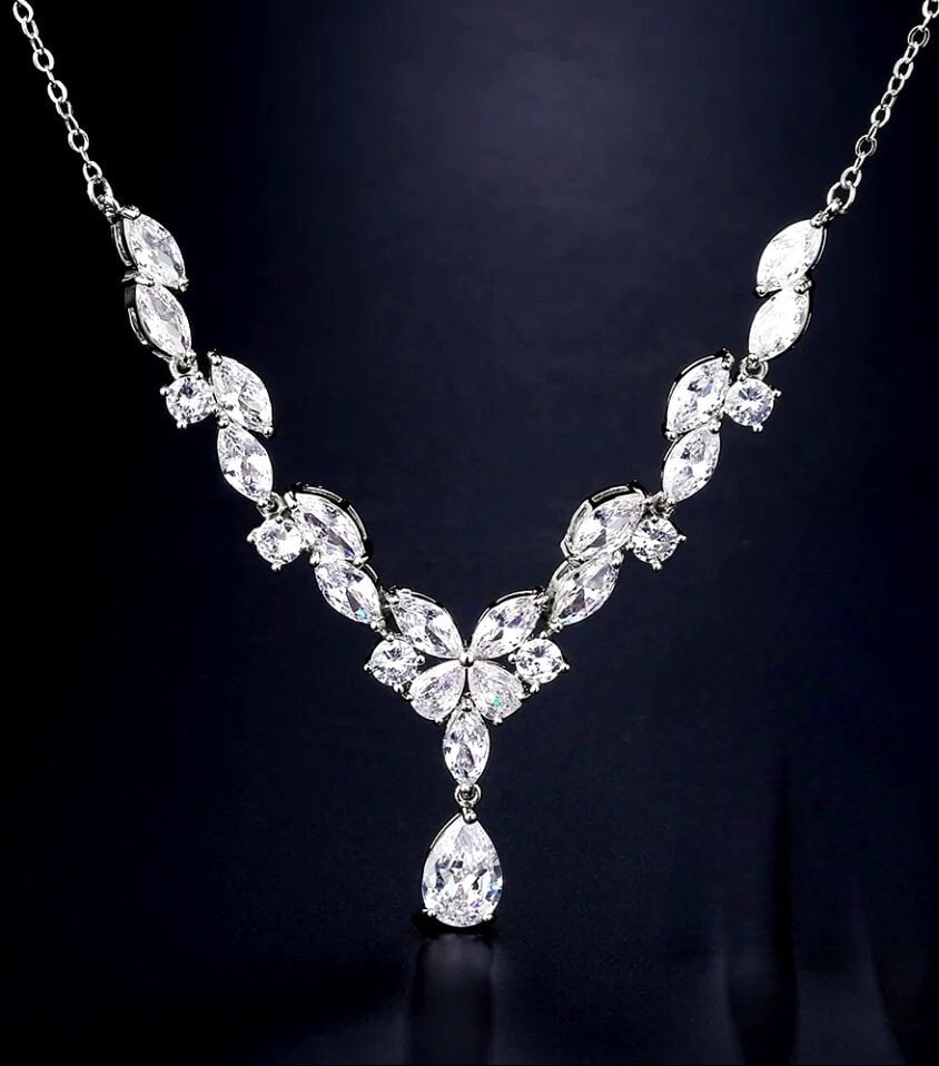 Silbernes Braut-Schmuckset Mit Quasten - Halskette & Ohrringe Mit Strass Für Hochzeit & Ball