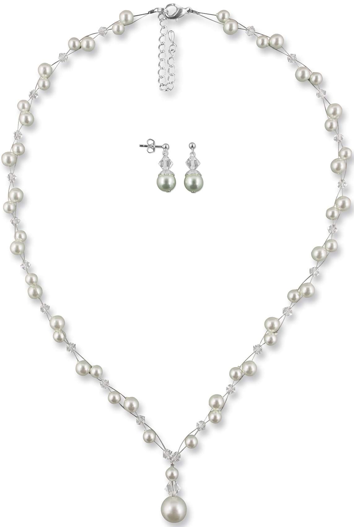 Mega schönes Braut-Schmuckset für deinen großen Tag! Die silberne Halskette mit eleganten Quasten und funkelnden Strass-Steinen sieht einfach traumhaft aus. Komplett mit passenden Ohrringen - alles harmonisch aufeinander abgestimmt.