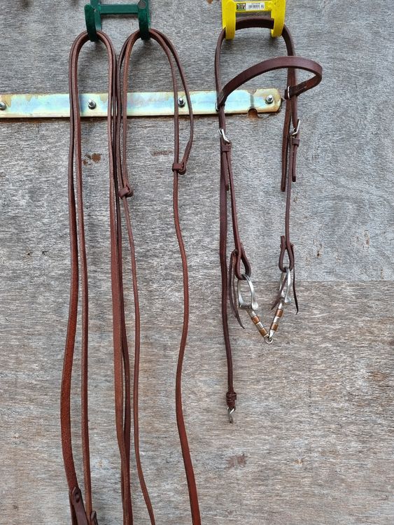Dieser Westernzaum 'Bend' mit Quick Change-System macht das Leben jedes Reiters leichter! Aus stabilem, weichem Qualitätsleder gefertigt, liegt er perfekt am Pferdekopf. Die gerundeten Kanten und das doppelt gelegte Leder an Genick- und Backenstücken sorgen für maximalen Komfort. Das Quick Change-System ermöglicht super einfachen Gebisswechsel - kein langes Fummel mehr! Die verchromten Beschläge sind nicht nur schick, sondern auch extrem stabil und langlebig. In natur Farbe und Größe Full/Cob passt dieser Zaum zu den meisten Pferden. Das gerade Stirnband und die auffällige Punzierung geben dem Zaum seinen charakteristischen Western-Look. Ob für Turniere, Ausritte oder die tägliche Arbeit - dieser Zaum vereint Tradition mit moderner Funktionalität. Dein Pferd wird sich wohlfühlen und du hast lange Freude an diesem hochwertigen Zaumzeug. Western-Reiter aufgepasst - hier bekommst du Qualität, die sich lohnt!