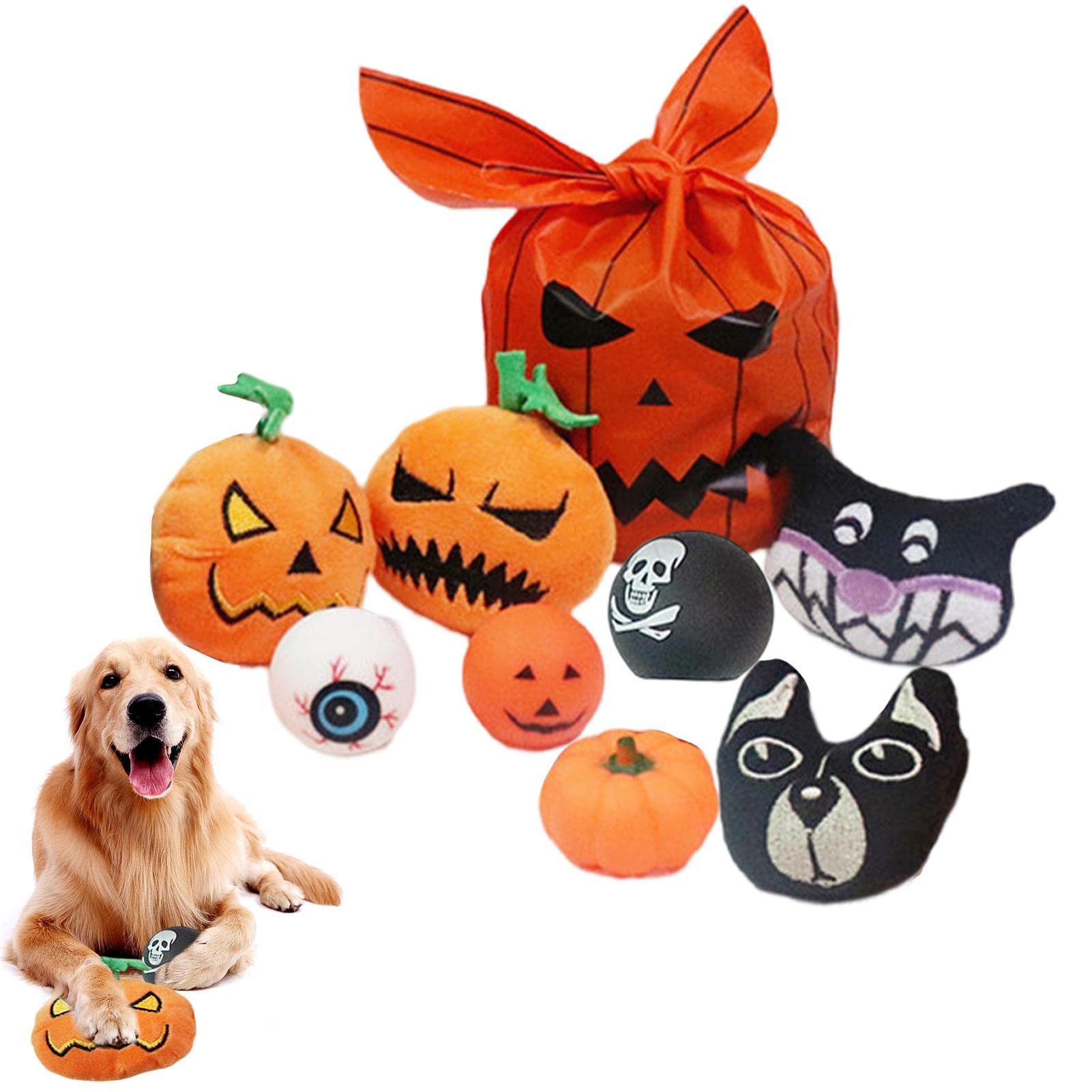 YNPQTDS Halloween Hundespielzeug - Quietschender Kürbis-Skelett Spielspaß Für Hunde (23x22 Cm)