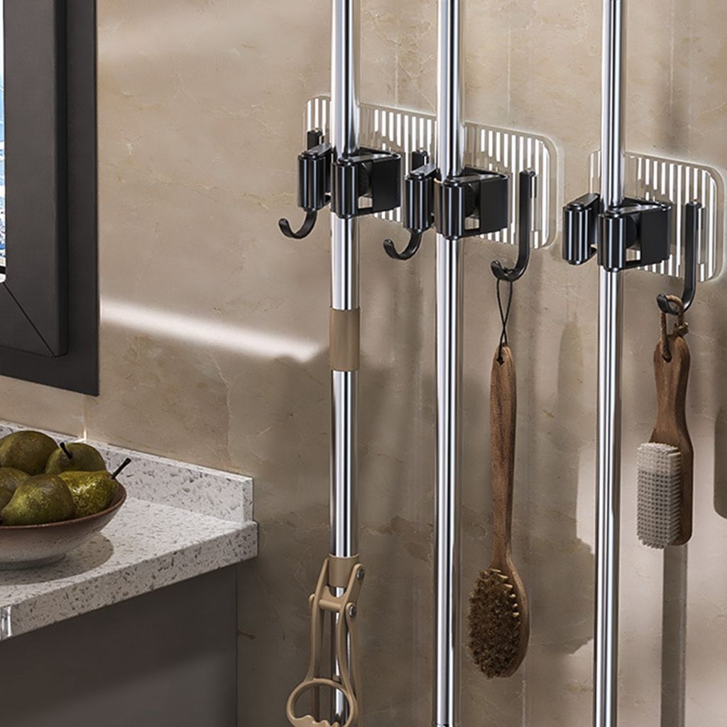 Quirlig Besenhalterung Wand - Selbstklebend Mit 4 Haltern & 2 Haken Schwarz