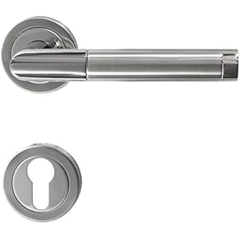 Edelstahl Türbeschlag Wellenform R - BB/PZ Ausführung, 52mm Rosetten