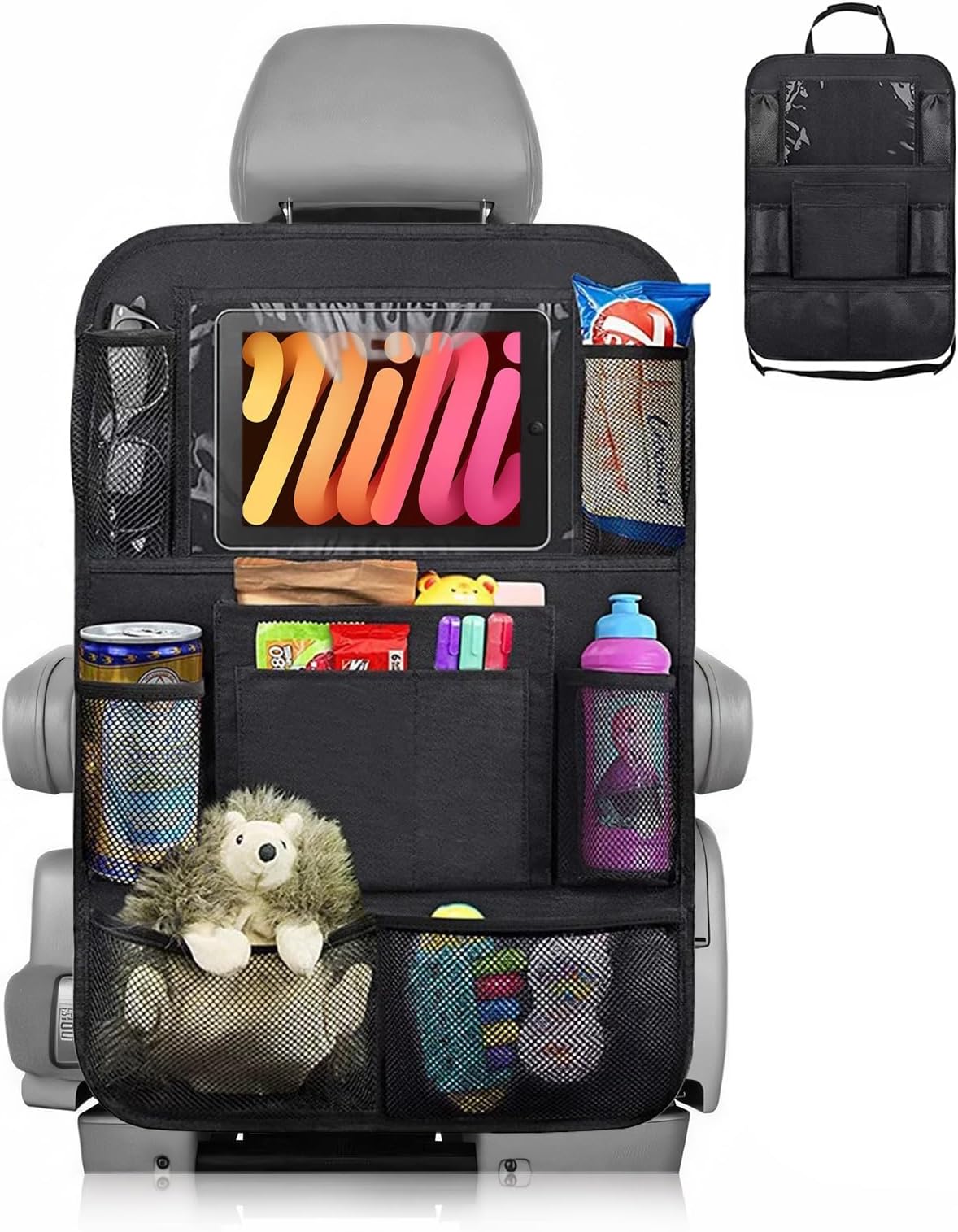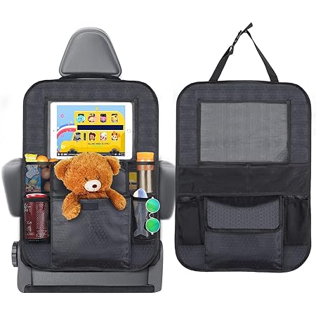 Schütze deine Autositze und schaffe Ordnung! Dieser Rückenlehnenschutz aus wasserdichtem Oxford-Stoff bewahrt deine Vordersitze vor Schmutz, Schuhabdrücken und Verschleiß. Mit 10 praktischen Taschen für Spielzeug, Getränke, Bücher und mehr. Die transparente Tablet-Tasche (bis 10 Zoll) unterhält Kinder auf langen Fahrten. Einfach an der Kopfstütze aufhängen und mit Gummibändern fixieren - keine Montage nötig. Leicht zu reinigen mit feuchtem Tuch oder in der Waschmaschine. Passt in die meisten Autos - ob PKW, Van oder Wohnmobil. Hält das Auto sauber und organisiert - perfekt für Familien mit Kindern oder Vielreisende. Im 2er-Set für beide Vordersitze.
