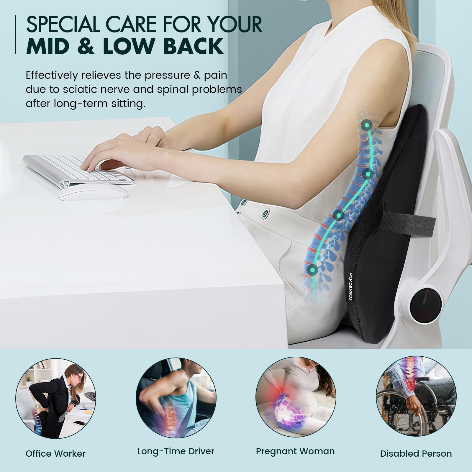 Lendenkissen Aus Memory-Schaum - Orthopädische Rückenstütze Für Bürostuhl