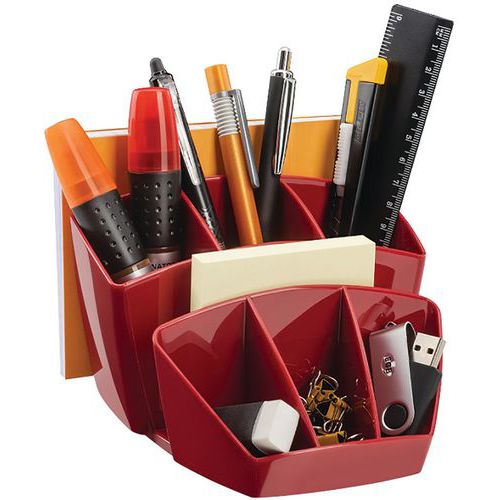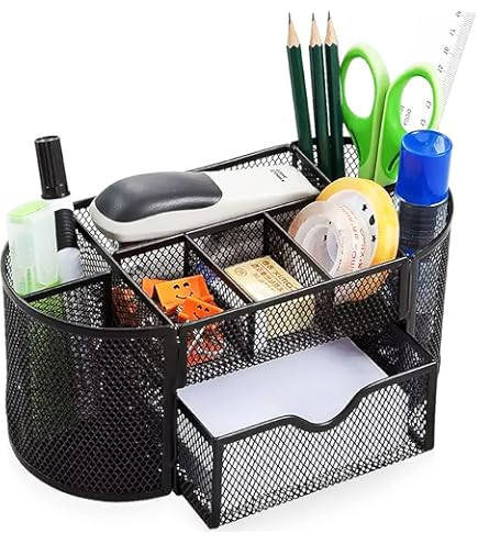 Schluss mit dem Chaos auf dem Schreibtisch! Der Osco Stifteköcher im modernen Mesh-Design bringt Ordnung in dein Büro-Leben. Mit 5 verschiedenen Röhren hast du Platz für alle deine Stifte, Marker und andere Kleinutensilien. Die runde Ablagefläche oben ist perfekt für Münzen, Büroklammern oder deine Lieblings-Süßigkeit. Unter dem Boden sind drei Gummipads, die deine Tischoberfläche vor Kratzern schützen - super praktisch! Das Drahtgeflecht ist nicht nur stylisch, sondern auch extrem stabil und schmutzabweisend. Einfach abwischen und schon sieht's aus wie neu. Mit nem Durchmesser von 155mm und ner Höhe von 140mm ist der Organizer kompakt genug für jeden Schreibtisch, aber groß genug für all deine Schreibsachen. Ob im Homeoffice oder im Firmenbüro - mit diesem Teil findest du alles sofort und hast immer nen aufgeräumten Arbeitsplatz!