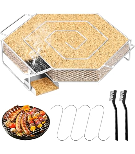 Boah, mit dieser Räucherschnecke wirst du zum Räucher-Profi! Aus hochwertigem Edelstahl - rostfrei und super langlebig. Bis zu 8 Stunden Brenndauer - damit räucherst du alles, was dir schmeckt: Fleisch, Fisch, Käse, Gemüse... einfach alles! Die spiralförmige Bauweise sorgt für konstanten, gleichmäßigen Rauch ohne große Hitzeentwicklung. Perfekt für Kalträuchern - die Aromen entfalten sich super! Einfach mit Räucherspänen befüllen (Buche, Eiche, Erle - was dir schmeckt), anzünden und auf den Smoker legen. Die Maße 20,5x20,5x5 cm passen in die meisten BBQ-Geräte. Reinigung ist ein Kinderspiel - einfach ausspülen, fertig. Ob du Einsteiger oder Profi bist - damit gelingt dir jedes Räucherwerk! Übrigens: Spart auch noch Räuchermehl, da es langsam und kontrolliert abbrennt. Einfach genial für alle, die gerne selbst räuchern! Probier's aus - du wirst begeistert sein!