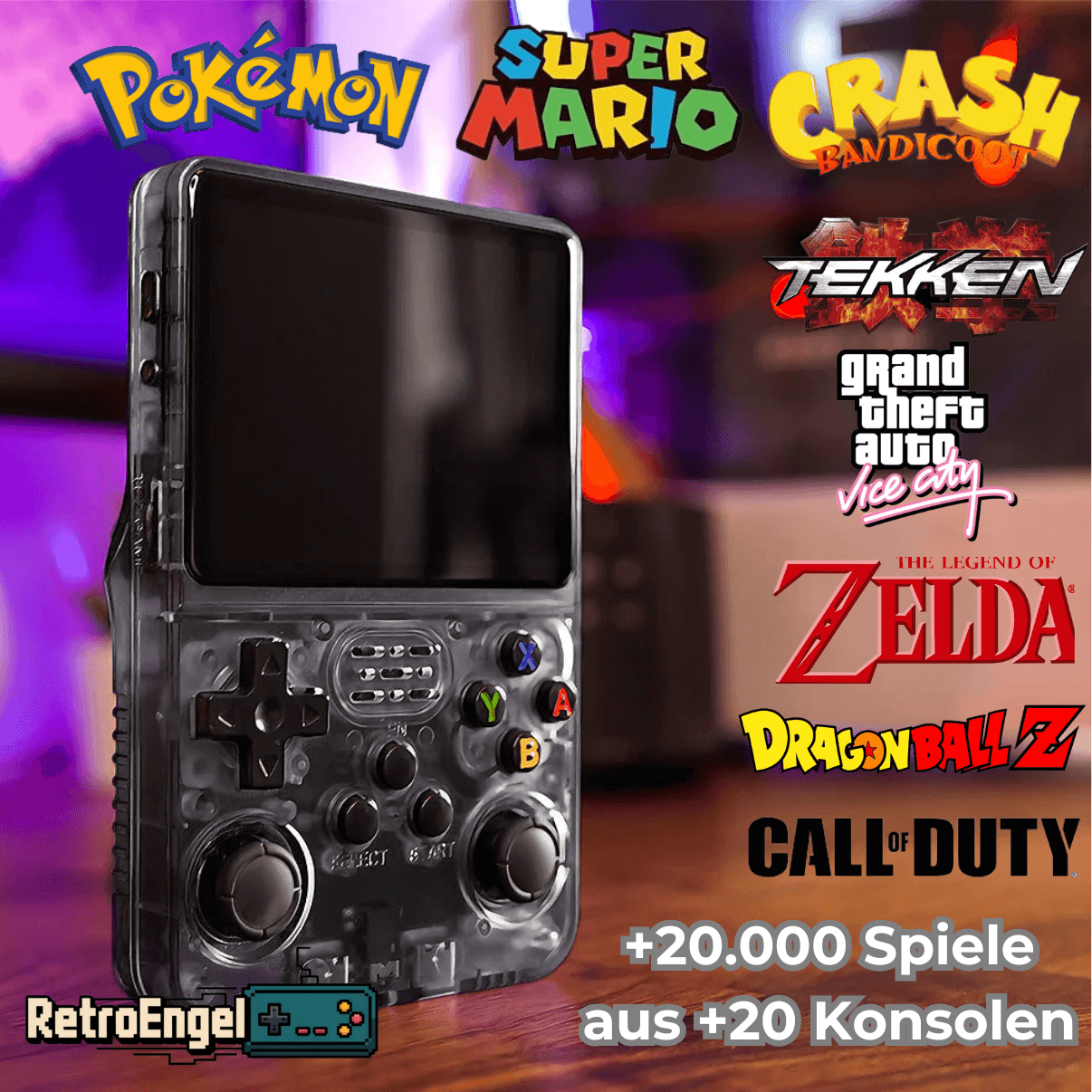 R36 Ultra Retro Handheld Konsole - 20000+ Spiele, 4 Zoll IPS, WiFi Online