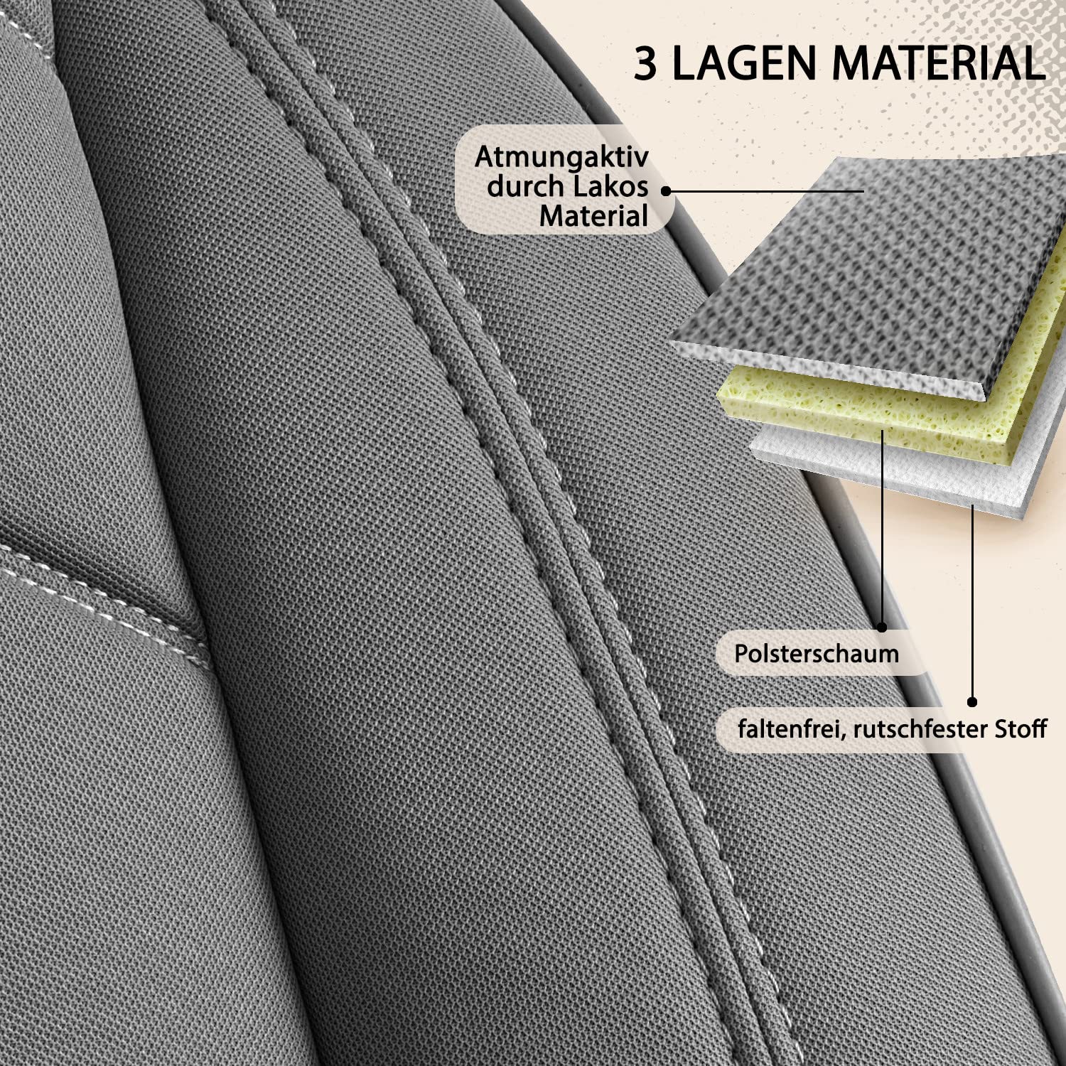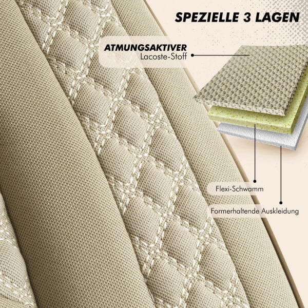 Mach deinen VW Bus gemütlich! Diese Royal Class Sitzbezüge für VW T4, T5 und T6 sind einfach der Hammer. Aus JAKAR Baumwolle gefertigt, sind sie im Sommer kühlend und im Winter wärmend - einfach perfekt für alle Jahreszeiten! Die Montage ist super einfach dank cleverer Klemmverbindungen und Zugbänder sorgen für rutschfesten Sitz. Die Bezüge sind waschbar bei 30°C und schützen deine Original-Sitze vor Verschleiß. WICHTIG: Nur für airbagfreie Fahrzeuge geeignet! Das Set enthält Bezüge für Fahrer und Beifahrer inklusive Kopfstützen. Das schwarze Design wertet deinen Innenraum richtig auf und die ergonomische Form sorgt für maximalen Komfort auch auf langen Fahrten. Einfach überziehen, festzurren und schon sieht dein Bus aus wie neu!