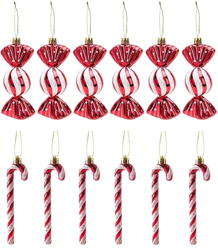RCVEVCY Weihnachtsbaum Deko Set - 18-tlg. Zuckerstangen Ornamente In Rot & Weiß