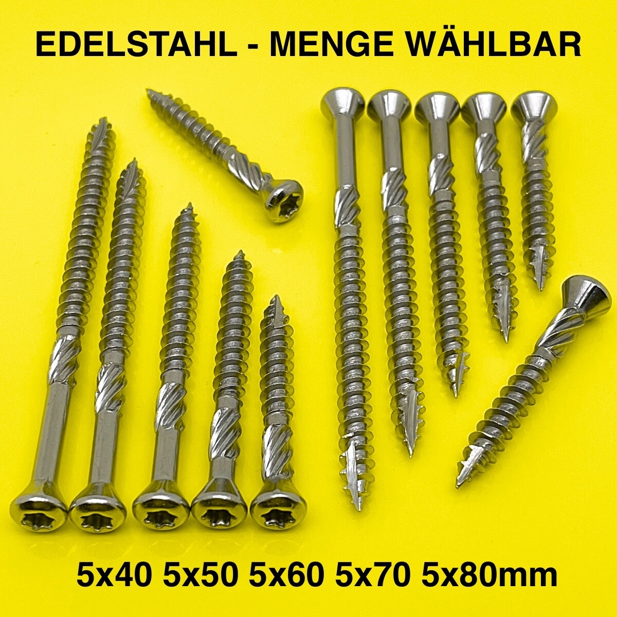 Hey, diese Terrassenschrauben von RE-SCHRAUB sind genau das Richtige für dein nächstes Terrassen-Projekt! Aus echtem Edelstahl A2, also komplett rostfrei und perfekt für draußen. Mit 5,5mm Durchmesser und 50mm Länge - ideal für die meisten Terrassendielen. Die Cut-Spitze macht das Ansetzen mega einfach und der Linsen-Senkkopf mit Fräsrippen sorgt für eine super saubere Optik. Torx TX25 Antrieb inklusive - da verrutscht nichts! Wichtig: Je nach Holz kann Vorbohren nötig sein und am besten mit niedriger Drehzahl arbeiten. Pro m² brauchst du so etwa 30 Stück. Kommen in praktischen Kartons zu 100 Stück - perfekt für dein Projekt!