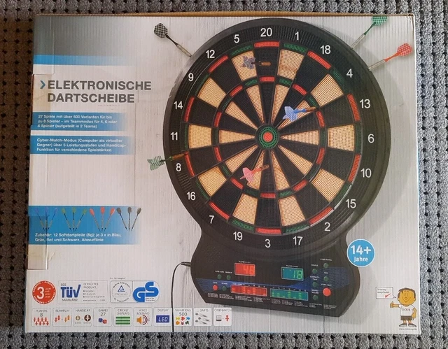 Dart-Spaß für die ganze Familie! Diese elektronische Dartscheibe bringt Unterhaltung für bis zu 8 Spieler. Mit 27 Hauptspielen und sagenhaften 216 Spielvarianten - da wird's nie langweilig! Inklusive 12 Pfeilen mit Ersatzspitzen. Klare LED-Bildschirme zeigen alle Infos auf einen Blick. Besonders praktisch: Läuft mit Batterien oder Netzteil - perfekt für drinnen und draußen. Der Mensch-Maschine-Modus mit verschiedenen Schwierigkeitsgraden fordert auch Profis heraus. Automatische Schlaffunktion nach 10 Minuten spart Energie. Das integrierte Sammelsystem bewahrt alle Pfeile ordentlich auf. Maße: 54,5x47x6cm, Gewicht: 2,5kg - leicht zu transportieren. Perfekt für Partys, Spieleabende oder gemütliche Runden mit Freunden. Einfache Montage mit Befestigungslöchern. Mit 8-stufiger Lautstärkeregulierung - ideal für jeden Einsatzort!