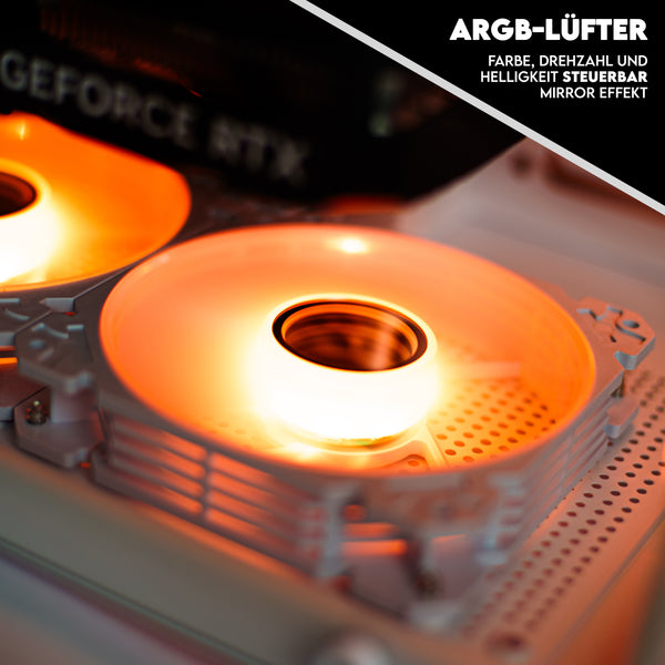 Zocke im Style! Dieser Venom White Gaming PC ist ein absoluter Hingucker mit seiner weißen Optik und RGB-Beleuchtung. Je nach Konfiguration mit GTX 1660 SUPER, 64GB RAM und 1TB SSD - aber du kannst zwischen verschiedenen Grafikkarten (bis RTX 5060), RAM-Größen (bis 128GB) und SSDs (bis 2TB) wählen. Mit 7x ARGB Lüftern und effizienter Wasserkühlung bleibt er auch bei langen Gaming-Sessions cool und leise. Windows 11 Pro ist bereits vorinstalliert - einfach auspacken und loslegen! WLAN und Bluetooth sind integriert, alle notwendigen Anschlüsse vorhanden. Perfekt für Gaming, Streaming, Office oder Bildbearbeitung. Dein neuer Gaming-Begleiter wartet!