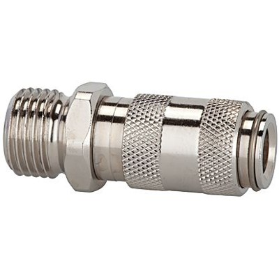 Mega praktisch diese RIEGLER Schnellverschlusskupplung! Einfach mit einer Hand bedienbar und super kompakt - aber mit großem Durchgang für minimalen Druckabfall. Aus massivem Messing gefertigt und perfekt für den Einsatz in der Pneumatik, im Maschinenbau oder in der Medizintechnik. Hält Betriebsdrücken von 0-35 bar stand und funktioniert zuverlässig bei Temperaturen von -20°C bis +100°C. Der Durchfluss liegt bei satten 165 l/min bei Luft. Wichtig: Beim Entkuppeln immer den Stecknippel festhalten - so vermeidest du den gefürchteten 'Peitschenhiebeffekt'! Technische Daten: NW 2,7, G 1/8 AG Anschluss, SW 11 mm, Länge 28 mm. Gehäuse, Ventilkörper und Hülse aus Messing blank, Dichtmaterial NBR, Kugel und Feder aus nichtrostendem Stahl. Ein absolutes Premium-Teil für anspruchsvolle Anwendungen!