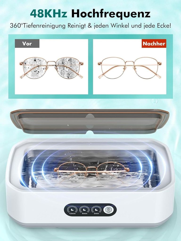Brillenträger, Schmuckliebhaber, Eltern - dieser RIGATE Ultraschallreiniger ist ein echter Alltagshelfer! Mit 46kHz Ultraschallfrequenz entfernt er schonend aber gründlich jeden Schmutz, Öl und Bakterien von euren wertvollen Gegenständen. Der 500ml Edelstahltank (SUS 304) ist groß genug für mehrere Brillen, Schmuckstücke oder Babyartikel gleichzeitig. Die 360° Tiefenreinigung erreicht auch die kleinsten Ritzen, in die keine Bürste kommt. Bis zu 600 Sekunden Dauerbetrieb sorgen für perfekte Ergebnisse in einem Durchgang. Mit nur 24W Leistung ist er energiesparend und sicher in der Anwendung. Ein-Knopf-Bedienung macht es super einfach - einfach Wasser einfüllen, Gegenstände reinlegen und Start drücken. Inklusive 12 Monate Garantie für sorgenfreien Einsatz. Ob Brillen, Uhren, Zahnspangen oder Rasierer - alles kommt blitzblank wieder raus!