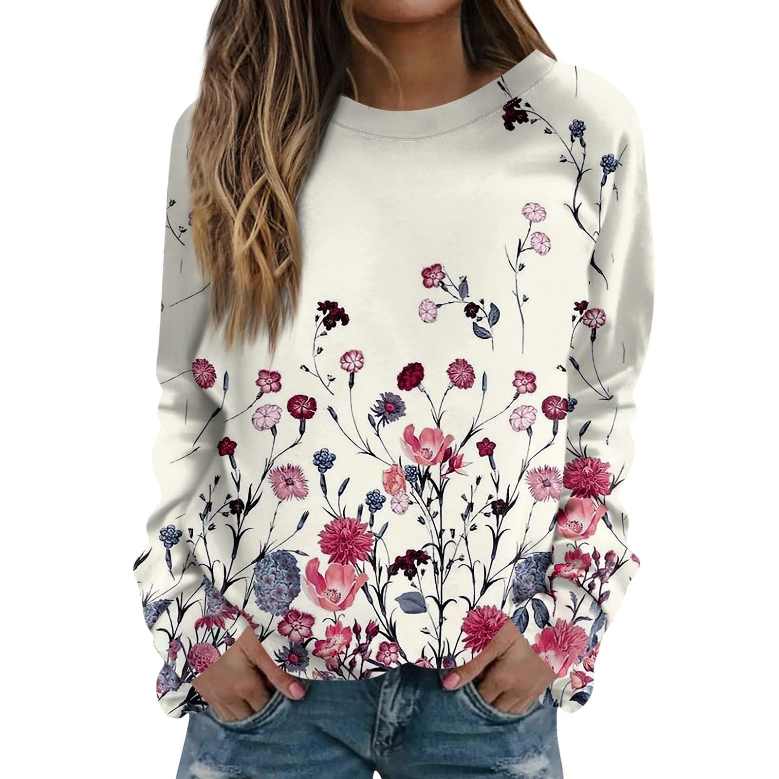 RMBLYfeiye Langarmshirt Damen Oversized - Blumen Print Sweatshirt