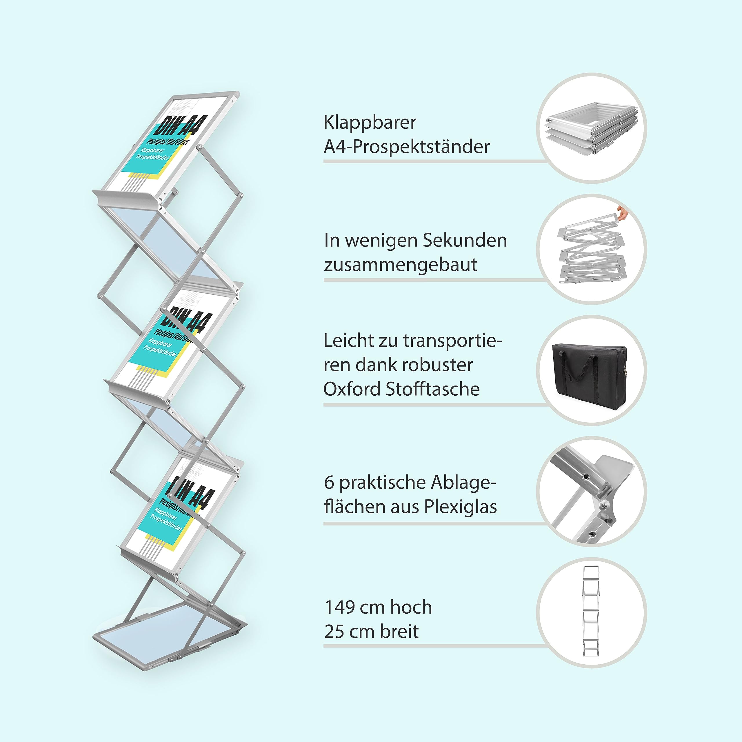 RMNKTHC Katalogständer Faltbar 4-Etagen - A4 Displayregal Für Prospekte & Zeitschriften