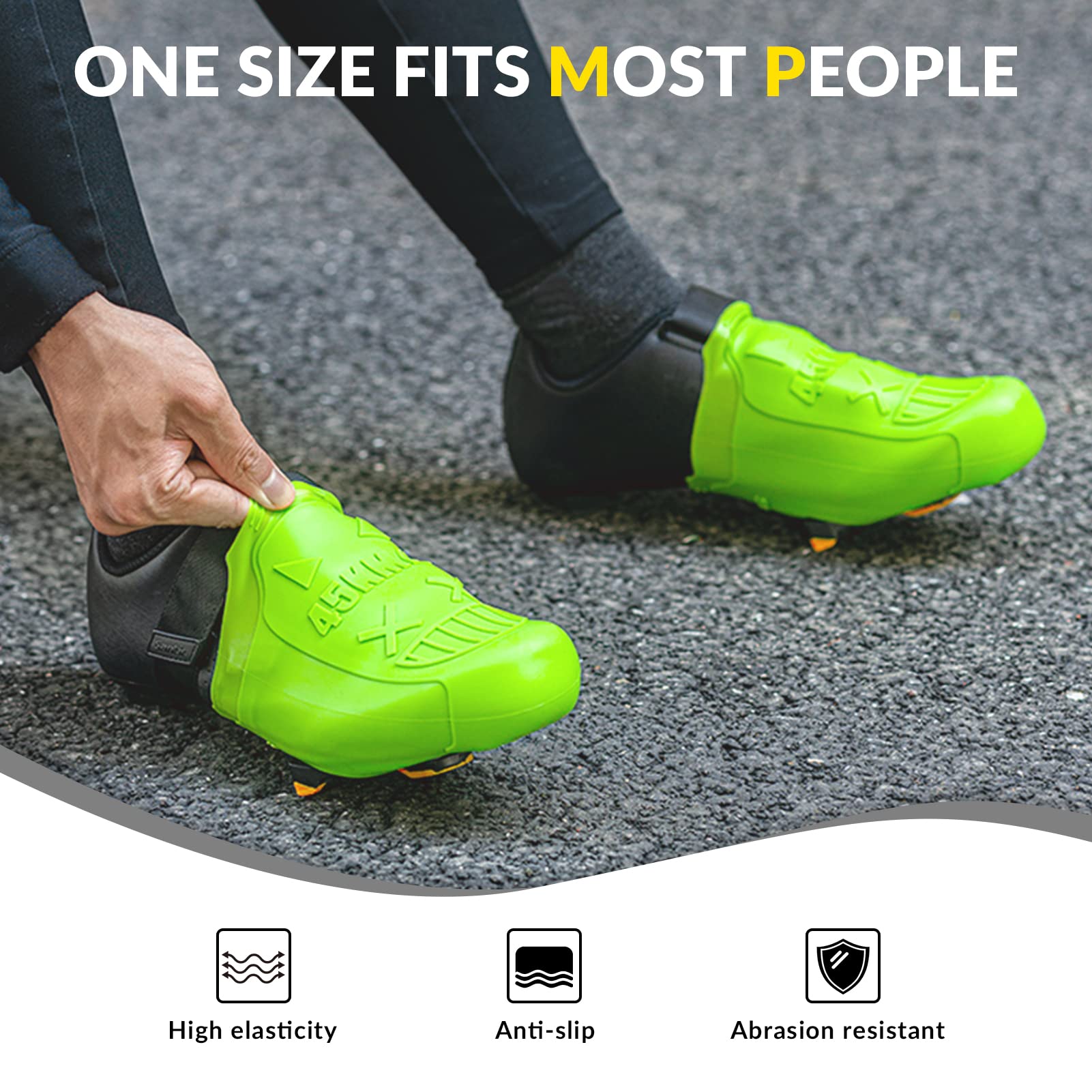 Regen? Wind? Kein Problem mit diesen ROCKBROS Überschuhen! Die wasserabweisenden Überzieher halten deine Füße trocken und warm - egal wie das Wetter wird. Mit reflektierenden Elementen am Logo und den Klettverschlüssen wirst du auch bei Dunkelheit gut gesehen. Super praktisch: Das offene Boden-Design passt zu fast allen Fahrradschuhen, auch SPD-Klickpedalen. Die Seitenschlitze mit durchgehendem Klettverschluss machen das An- und Ausziehen super einfach - selbst mit Radschuhen an. Aus robustem Polyester, nur 189g leicht (Größe S), und in Schwarz/Grün erhältlich. Inklusive praktischer Aufbewahrungstasche für unterwegs. Ob Rennrad, Mountainbike oder Citybike - diese Überschuhe sind dein bester Begleiter bei schlechtem Wetter. Einfach über die Schuhe ziehen, festkletten und losradeln - deine Füße bleiben trocken und du sicher auf der Straße!