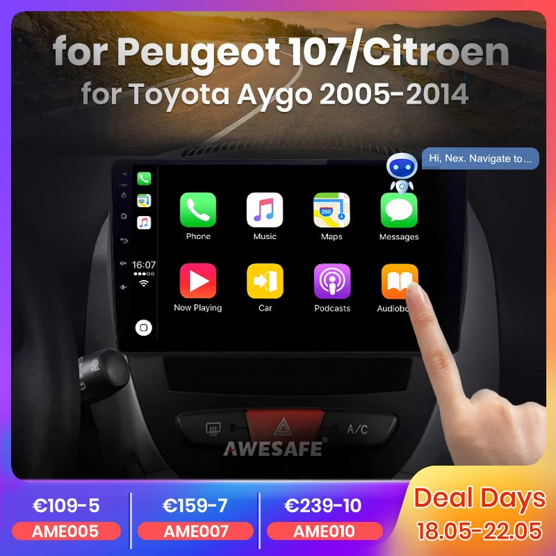 Modernisiere dein Auto! Dieses NHOPEEW Android Radio mit 10,1 Zoll Touchscreen bringt modernste Technik in deinen Peugeot 107, Citroën C1 oder Toyota Aygo (2004-2014). Mit 8-Kern Prozessor, 6GB RAM und 128GB Speicher läuft alles butterweich.\\n\\nWireless CarPlay und Android Auto sind inklusive - so hast du sofort Zugriff auf Navigation, Musik und Anrufe. Das GPS funktioniert auch offline, und mit WLAN kannst du zusätzliche Apps wie YouTube oder TikTok installieren.\\n\\nDie Lenkradsteuerung bleibt erhalten - du kannst also weiterhin bequem vom Steuer aus Titel wechseln und die Lautstärke regeln. Die Installation ist Plug-and-Play, alle nötigen Kabel sind dabei.\\n\\nWeitere Features: Bluetooth 5.0, FM/RDS Radio, DSP mit 32-Band Equalizer und 1280x720 HD Auflösung. Optional mit Rückfahrkamera erweiterbar. Mach aus deinem Auto ein rollendes Entertainment-Center!