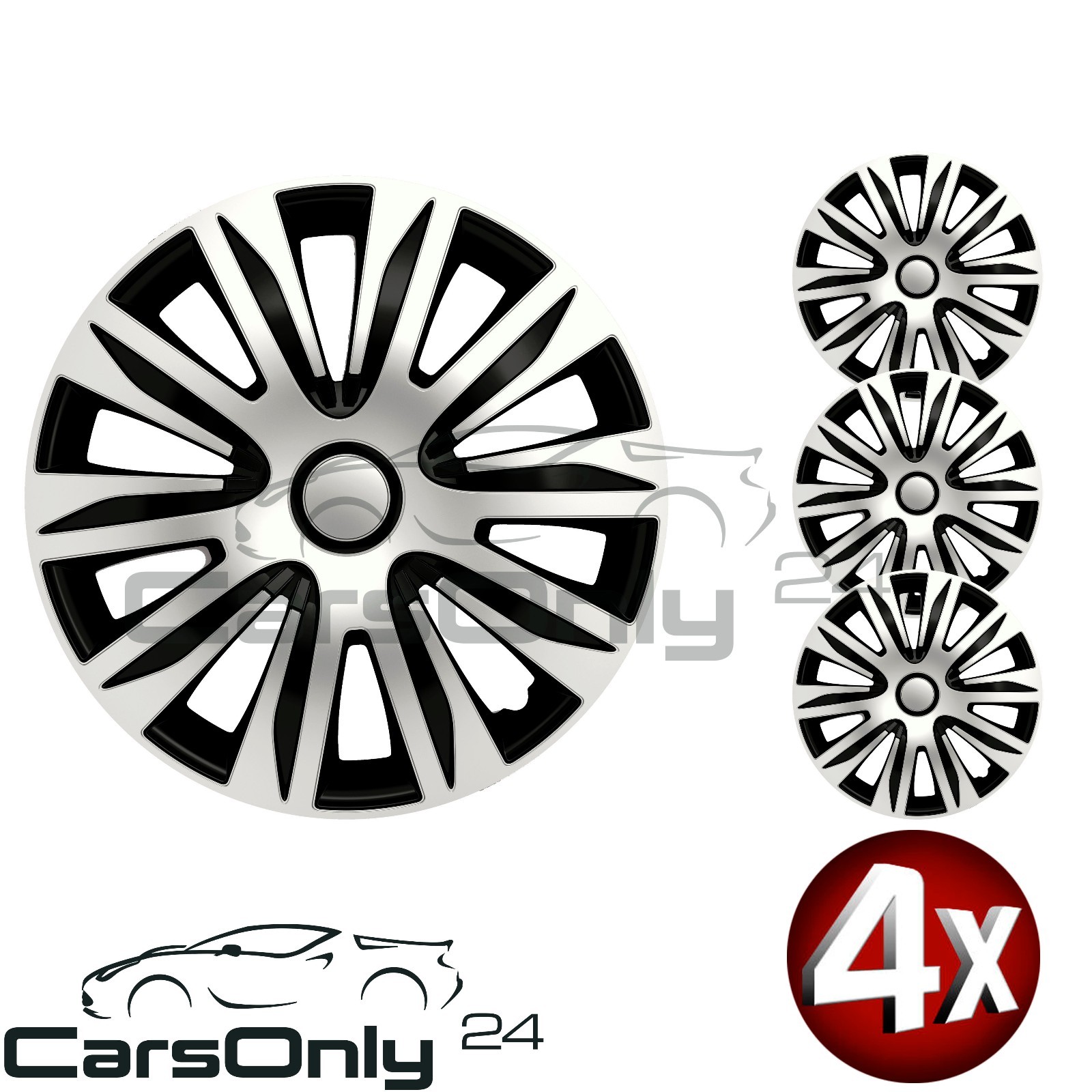 Mach dein Auto sportlich in Minuten! Diese Turbo Silver Black PRO Radzierblenden verpassen deiner Stahlfelge sofort einen aggressiven Look. Erhältlich in 14, 15 oder 16 Zoll - wähl einfach deine Größe. Das silber-schwarze Design im Turbo-Stil sieht einfach mega aus und passt zu fast jedem Fahrzeug. Aus schlagfestem, UV-beständigem ABS-Material, das nicht so schnell kaputt geht. Die Montage ist werkzeuglos - einfach mit dem Spannring befestigen und fertig. Im Set bekommst du 4 Stück, also für alle Räder. Ob Daily Driver oder Wochenend-Auto - diese Blenden machen immer eine gute Figur!