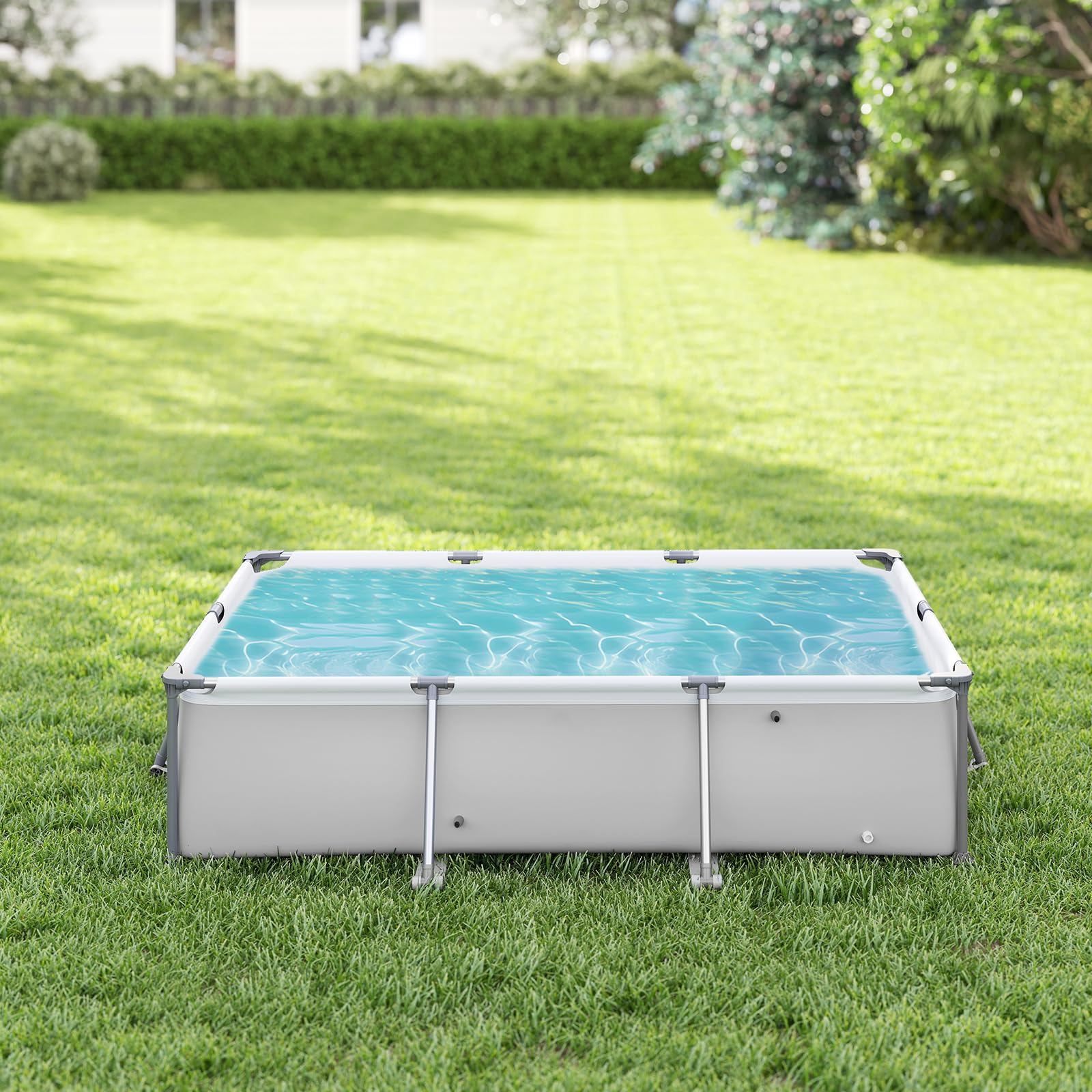 Juhu, Badespaß im eigenen Garten! Dieser SOARS Aufstellpool mit 228x159x42cm ist perfekt für heiße Sommertage. Mit 1287 Litern Fassungsvermögen und 37cm Wassertiefe haben deine Kinder (ab 3 Jahren) genug Platz zum Plantschen und Toben. Der robuste Metallrahmen mit einzigartigen Verriegelungsanschlüssen sorgt für absolute Stabilität - da kann nichts wackeln! Die rutschfesten Füße geben zusätzlichen Halt auf jedem Untergrund. Das dreilagige PVC-Polyester-PVC-Material ist super widerstandsfähig gegen Sonne, Chlor und Algen - kein Undichtwerden garantiert! Mit dem integrierten Filtersystem (Pumpe leider nicht im Lieferumfang) bleibt das Wasser immer schön klar und sauber. Der Aufbau ist kinderleicht - dank klarer Anleitung und intelligentem Design brauchst du keine besonderen Werkzeuge oder handwerklichen Fähigkeiten. In null Komma nichts steht der Pool bereit für den ersten Sprung ins kühle Nass! Perfekt für Familien mit Kindern, die im Sommer nicht immer ins Schwimmbad wollen. Mit diesem Pool holst du dir den Badespaß einfach in den eigenen Garten - praktischer geht's nicht!