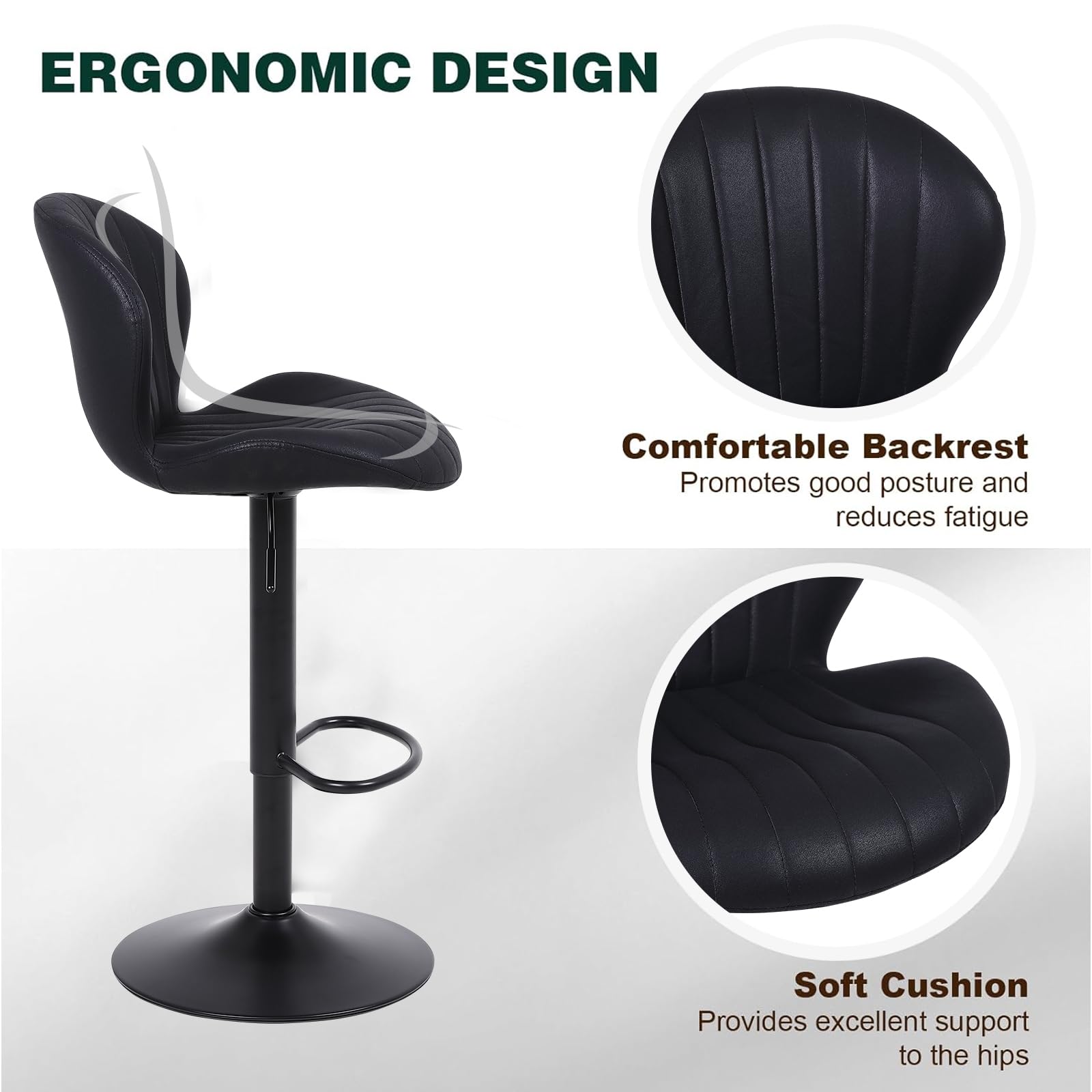 Modernes Sitzvergnügen für deine Küche oder Bar! Dieses 2er Set Barhocker von ralex-chair kombiniert Style und Komfort perfekt. Mit pneumatischer Höhenverstellung - einfach per Hebel 20 cm variieren! Die 360° Drehfunktion macht das Sitzen dynamisch und unterhaltsam. Aus weichem Wildleder mit ergonomischer Rückenlehne für optimalen Komfort. Die robuste Fußstütze entlastet den Rücken und fördert eine gesunde Sitzhaltung. Stabler Metallrahmen mit SGS-zertifiziertem Gaslift trägt bis zu 150 kg. Rutschfester Gummiring sorgt für sicheren Stand. Einfache Montage - schnell einsatzbereit! Perfekt für Kücheninsel, Home-Bar oder Wohnzimmer. Mach deinen Wohnbereich mit diesen stylischen Hockern komplett!