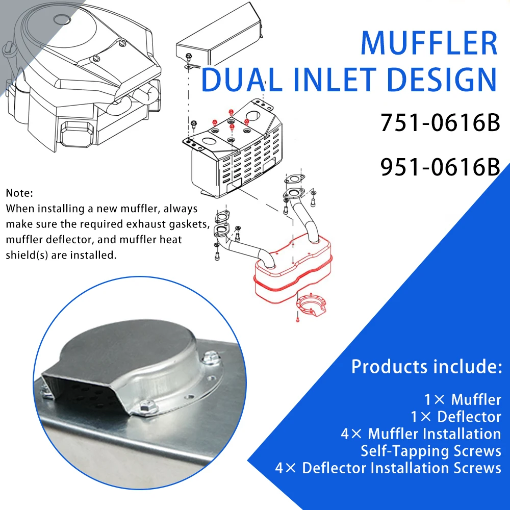 Schalldämpfer Für Rasenmäher - 951-0616B Mit Zwei Einlässen, Passt Für MTD, Cub Cadet & Mehr
