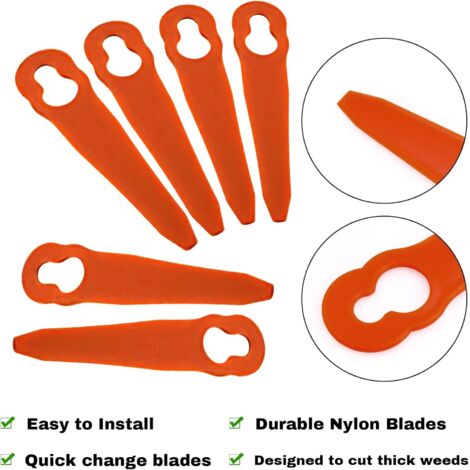 Gärtner aufgepasst! Diese 20 Nylon-Messer bringen deinen Rasentrimmer zurück in Top-Form. Passend für Stihl PolyCut 2-2/3-2, FSA 45, FSA 57 und FSE 52. Die 82mm scharfen Klingen schneiden selbst dichtes Gras und Unkraut mühelos. Einfach werkzeuglos in den Trimmerkopf einrasten - Wechsel in Sekunden! Vor dem ersten Gebrauch 24 Stunden einweichen, dann sind sie besonders elastisch und bruchfest. Mit 20 Stück bist du die ganze Saison versorgt. Trocken lagern und bei Bedarf einfach wechseln. Spart Zeit und Geld - warum teure Originalteile kaufen, wenn diese hier genauso gut sind? Dein Garten wird's dir danken!