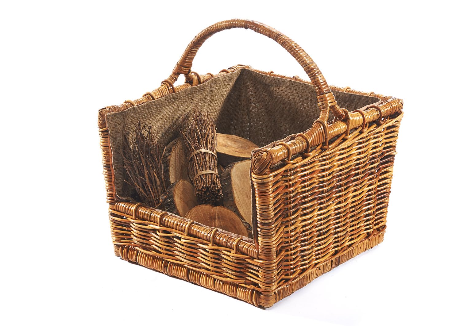 Kobolo Holzkorb Rattan 2er Set - Kaminholzkörbe Mit Leineneinsatz Braun