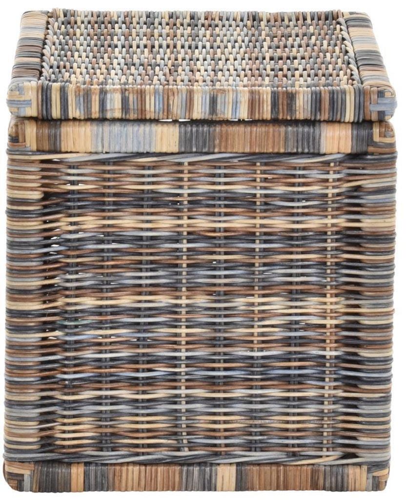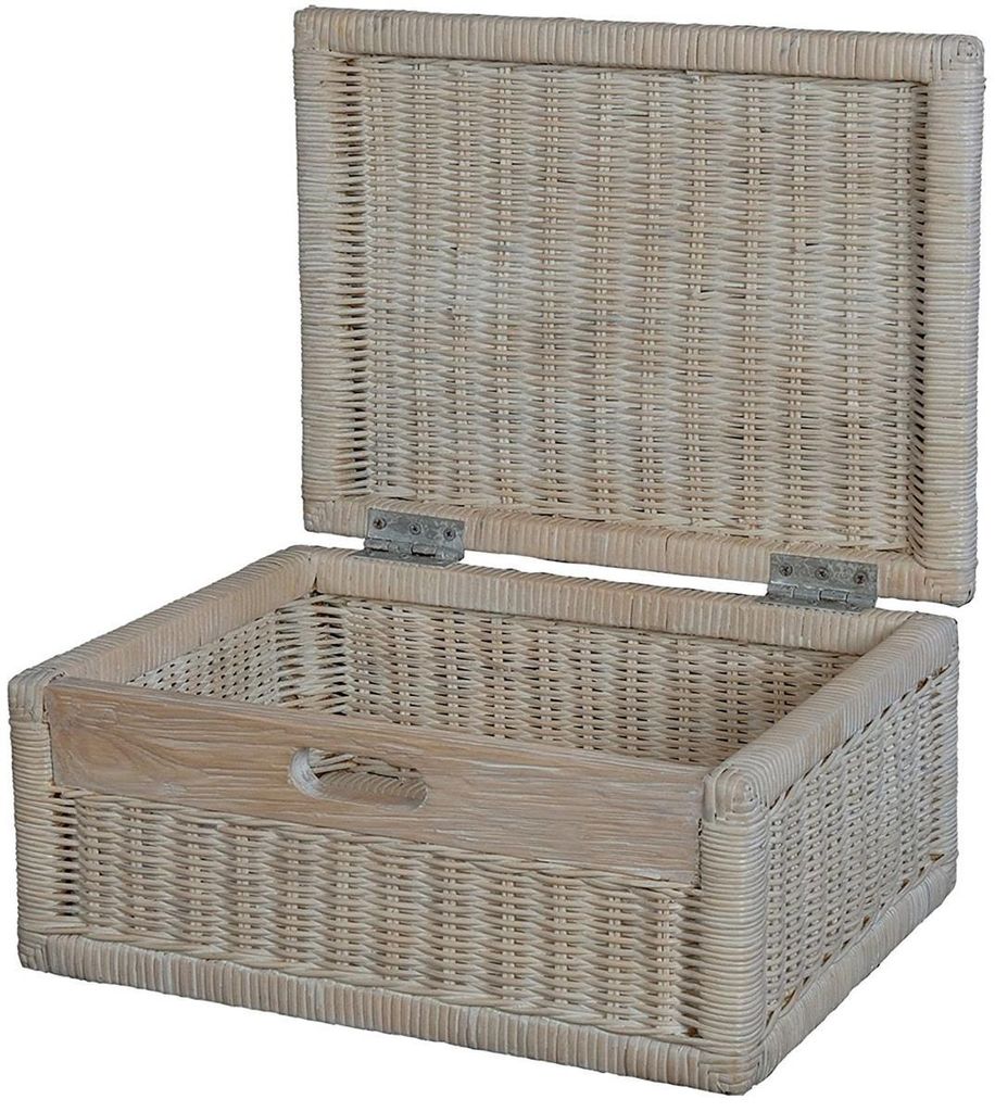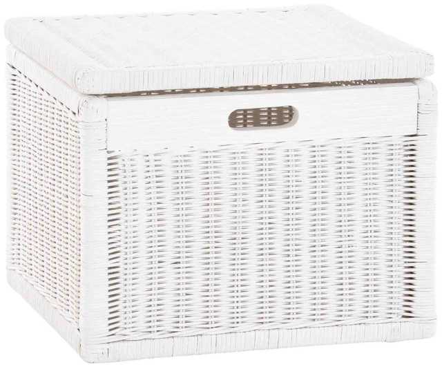 Rattan Aufbewahrungskorb Mit Deckel Weiß - Geflochtener Regalkorb 43x32x34cm