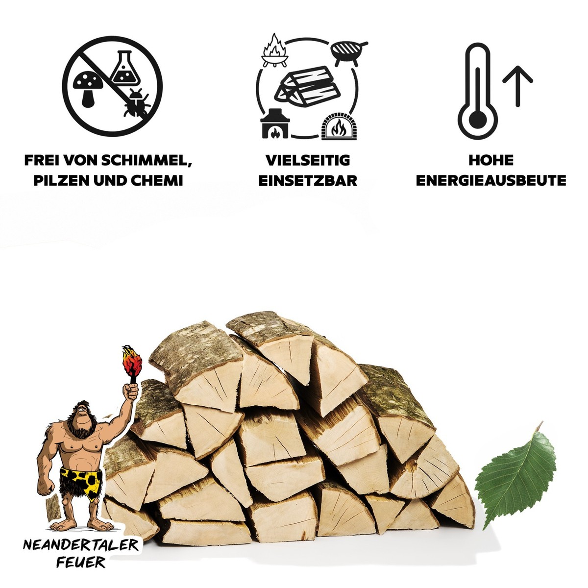 Echte Wärme für gemütliche Abende! Dieses hochwertige Buchenholz von Neandertaler Feuer ist perfekt für alle, die es kuschelig warm mögen. Als reines Naturprodukt aus 100% Hainbuche Buche brennt es gleichmäßig ab und entwickelt eine angenehme, langanhaltende Wärme. Mit 2 Raummeter haben Sie genug Holz für die ganze kalte Jahreszeit. Das Besondere: Es ist kammergetrocknet, hat also eine niedrige Restfeuchte und ist sofort einsatzbereit. Kein langes Lagern mehr notwendig! Perfekt für Ihren Kaminofen, Kamin, aber auch für den Pizzaofen, Grill oder die Feuerschale im Garten. Das Holz stammt aus nachhaltiger Forstwirtschaft in Europa - gut für die Umwelt und mit niedrigem CO₂-Fußabdruck. Die Holzscheite haben eine Länge von ca. 25 oder 33 cm und sind sauber geschnitten. Frei von Schimmel, Pilzen und Chemie - einfach reines, natürliches Brennholz. Geliefert wird es praktisch auf Palette, damit es einfach zu verstauen ist. Einfach bestellen und sich auf gemütliche Stunden vor dem Kaminfeuer freuen! Übrigens: Direkt vom Hersteller bedeutet auch besonders günstige Preise. Einfach klasse Holz für anspruchsvolle Feuerstellen-Fans!