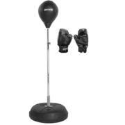 Ready for some boxing action? Dieser Boxstand-Trainer bringt das Boxtraining direkt zu dir nach Hause! Mit verstellbarer Höhe für den Kopfbereich (162-198cm) und der Zielscheibe (120-163cm) - passt sich also jedem an. Der Schwenkarm dreht sich 360° und der Punchball prallt um 90° zurück - super für schnelle Reaktions- und Koordinationsübungen. Die Basis hat 51cm Durchmesser und kann mit Sand oder Wasser gefüllt werden für ultimative Stabilität. 14 Saugnäpfe am Boden verhindern Rutschen. Aus robusten Materialien: HDPE, PU, Gummi, Stahl und Schwamm - galvanisiert für lange Haltbarkeit. Perfekt für Fitnessbegeisterte, die ihre Armkraft, Hand-Augen-Koordination und Boxskills verbessern wollen. Ob im Wohnzimmer, Garten, Fitnessstudio oder auf dem Balkon - überall einsetzbar. Einfach aufblasen, Basis befüllen und losboxen! Damit wirst du zum Box-Profi!