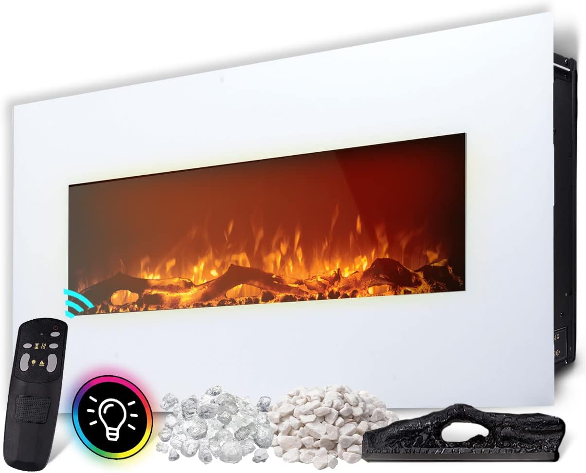 SHX Elektrokamin Mit Heizung - Realistischer LED Flammeneffekt In Weiß