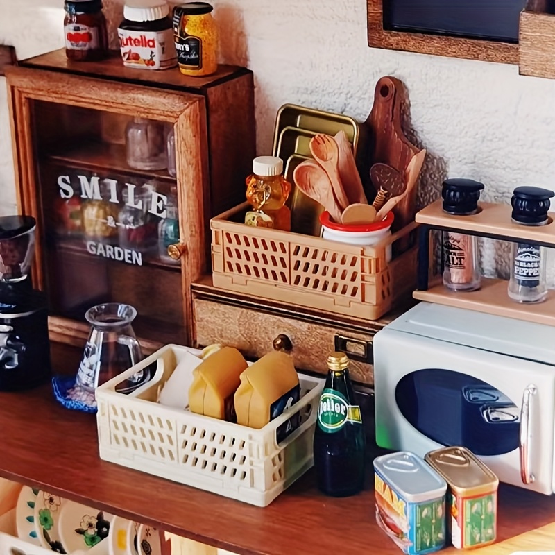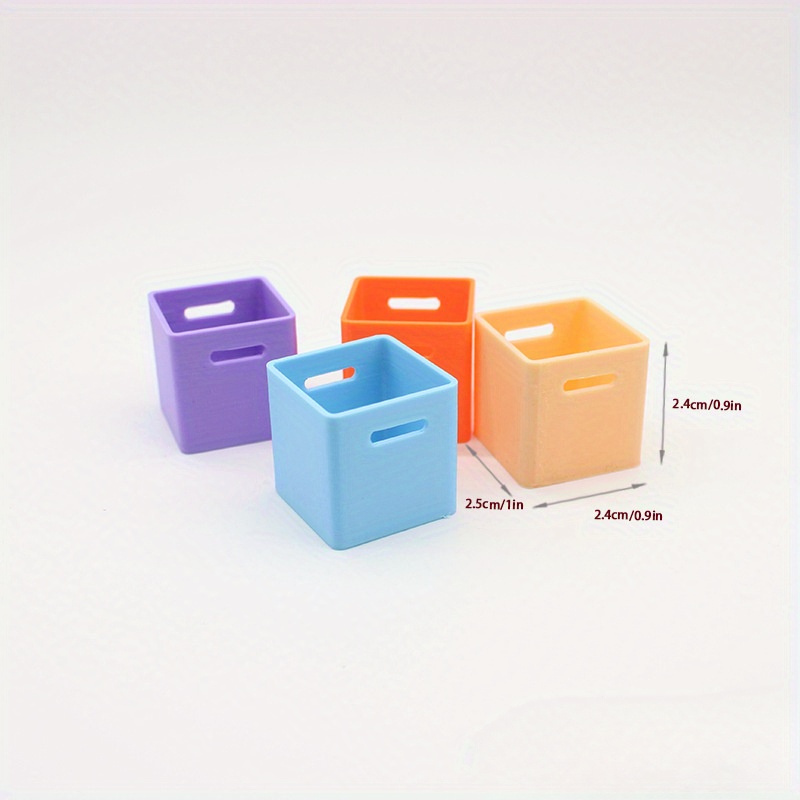 Total praktisch für alle Puppenhaus-Fans! Dieses Set mit 4 Mini-Aufbewahrungsboxen und einem Regal bringt endlich Ordnung in deine Puppenhaus-Welt. Aus stabilem Kunststoff gefertigt, sind die Boxen etwa 5,6x5,6x2,5 cm groß - perfekt für winziges Zubehör. Das coole DIY-Design lässt dich das Regal nach Belieben zusammenbauen und anordnen. So findest du immer schnell, was du suchst: Möbel, Accessoires, Mini-Lebensmittel - alles hat seinen Platz. Die bunten Farben machen Spaß und die realistischen Details passen super zu jedem Puppenhaus. Besonders praktisch für Sammler oder Familien mit Kindern. Fördert die Kreativität und hilft, alles ordentlich zu organisieren. Einfach aufstellen und schon wird das Puppenspiel noch mehr Spaß machen!