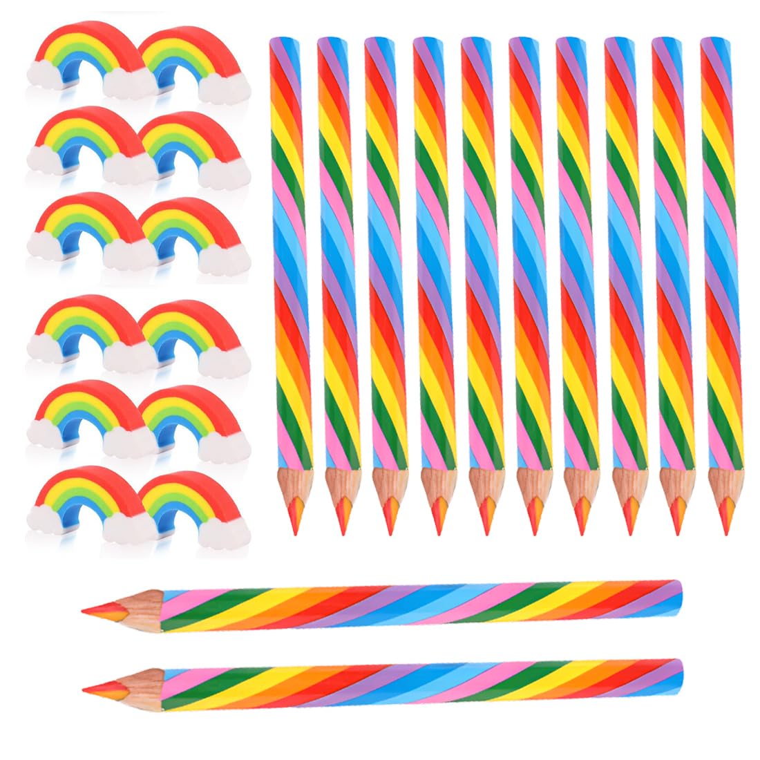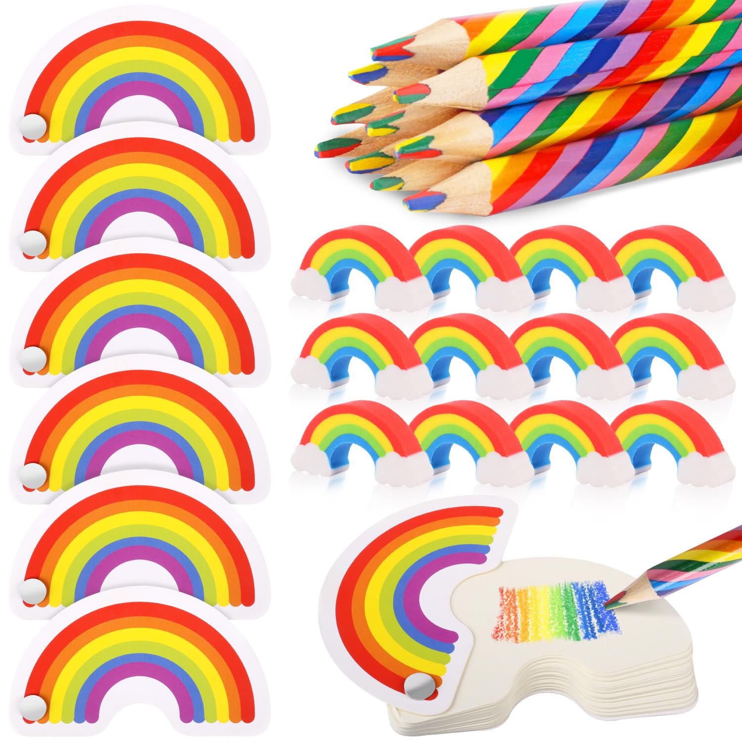 Buntes Kreativ-Set für kleine Künstler! Dieses 12er-Set enthält alles für malbegeisterte Kinder: Je eine Geschenktüte mit Regenbogenmotiv, einen Regenbogen-Anhänger, einen niedlichen Regenbogen-Radiergummi und vierfarbige Buntstifte. Die Stifte haben robuste Minen in Rot, Gelb, Grün und Blau - mit einem Stift kannst du mehrere Farben malen. Perfekt für Geburtstage, Kindertag, Weihnachten oder als Abschiedsgeschenk in der Grundschule. Fördert die Kreativität und macht das Lernen bunt. Ideal für Eltern-Kind-Aktivitäten oder als Mitgebsel für Kindergeburtstage. Bring Farbe in den Alltag!