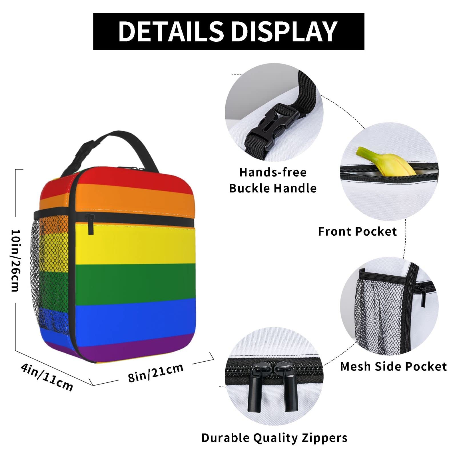 Zeig Farbe beim Lunch! Diese coole Lunchtasche im Regenbogen-Design ist dein perfekter Begleiter für Schule, Arbeit oder Picknick. Mit 26,5x16,5x22 cm bietet sie richtig viel Platz für dein Essen, Snacks und Getränke. Das 600D PU Oxford-Material ist wasserabweisend und super robust - da macht auch mal ein Regenschauer nichts aus. Innen sorgt die Aluminiumfolie mit Baumwollfutter für optimale Isolierung. Dein Essen bleibt lange warm oder kalt - je nachdem was du möchtest. Der abgerundete Griff liegt super in der Hand, und die Reißverschlüsse sind leichtgängig. Vorne gibt's noch eine Extratasche für Besteck oder Servietten. Perfekt für Erwachsene und Kinder gleichermaßen. Ob du zur Arbeit, Uni gehst oder einen Ausflug machst - mit dieser stylischen Tasche machst du immer eine gute Figur und hast dein Essen immer perfekt temperiert dabei!