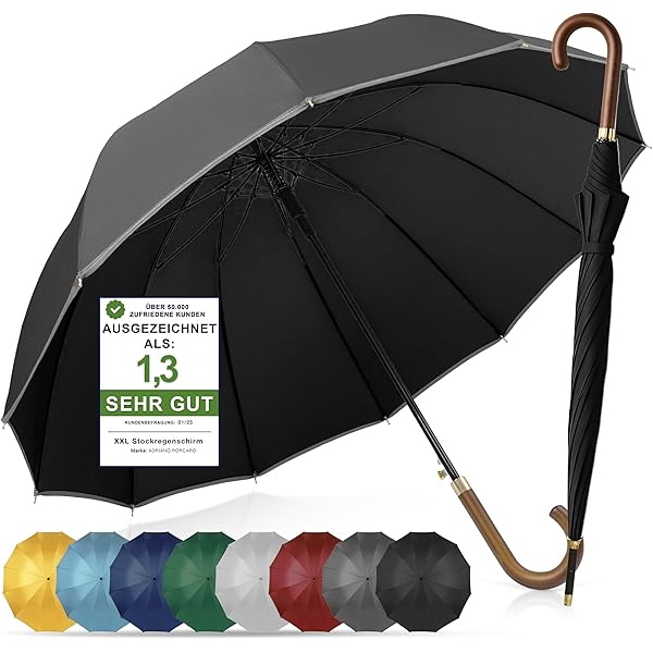 Der VERDONE WEISNER Sparkler Pro ist nicht irgendein Regenschirm - das ist Premium-Qualität pur! Mit FlexiGlass-Fiberglasstreben ist er super biegsam und bricht nicht, selbst bei starkem Wind. Das Wind Reverse System lässt ihn bei Sturm gezielt umklappen, ohne dass was kaputt geht. Die Teflon-Beschichtung auf dem Ponge 350XT-Gewebe lässt Wasser und Schmutz einfach abperlen - auch gegen Bakterien! Die One-Click-Automatik ist genial: Auf- und zuklappen mit nur einem Knopfdruck, perfekt für unterwegs. Der echte Buchenholzgriff liegt super in der Hand, und die gold-kupferfarbenen Details sehen einfach edel aus. Mit Lederschlaufe und Etui bleibt er immer geschützt. Geschlossen nur 37 cm lang, entfaltet er sich zu 140 cm Spannweite - Platz für 1-2 Personen. Ob für Pendler, Reisende oder den Stadtalltag - mit diesem Schirm bist du bei jedem Wetter stylisch unterwegs!
