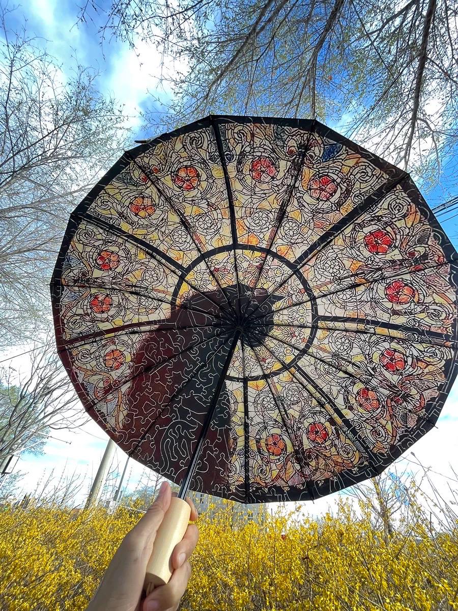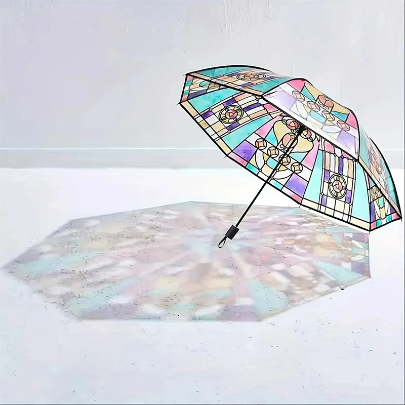 Transparenter Vintage Regenschirm - Buntglas Design Windfest Mit Automatik-Funktion