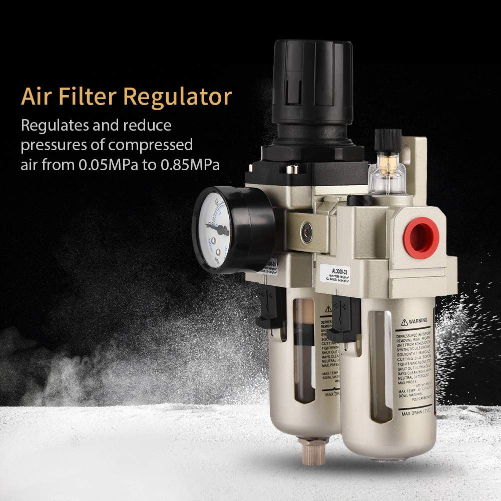 Für perfekte Druckluft brauchst du diesen Filter-Regler! Aus robuster Aluminiumlegierung - hält mehr aus als billige Modelle. Regelt den Druck von 0,05 bis 0,85 MPa und filtert dabei Feuchtigkeit und Partikel raus. Mit 3/8 Anschlüssen passt er an die meisten Kompressoren. Filterpräzision bis 5μm - also selbst feinste Schmutzteilchen werden rausgeholt. Kompakte Maße (21x12x6,5cm) und nur 857g schwer - leicht einzubauen. Verhindert Korrosion in deinen Druckluftwerkzeugen und sorgt für saubere, trockene Luft. Ob in Werkstatt oder Hobbykeller - mit diesem Teil hast du immer optimale Druckluftqualität. Einfach zwischen Kompressor und Luftschlauch montieren und schon läuft's besser!