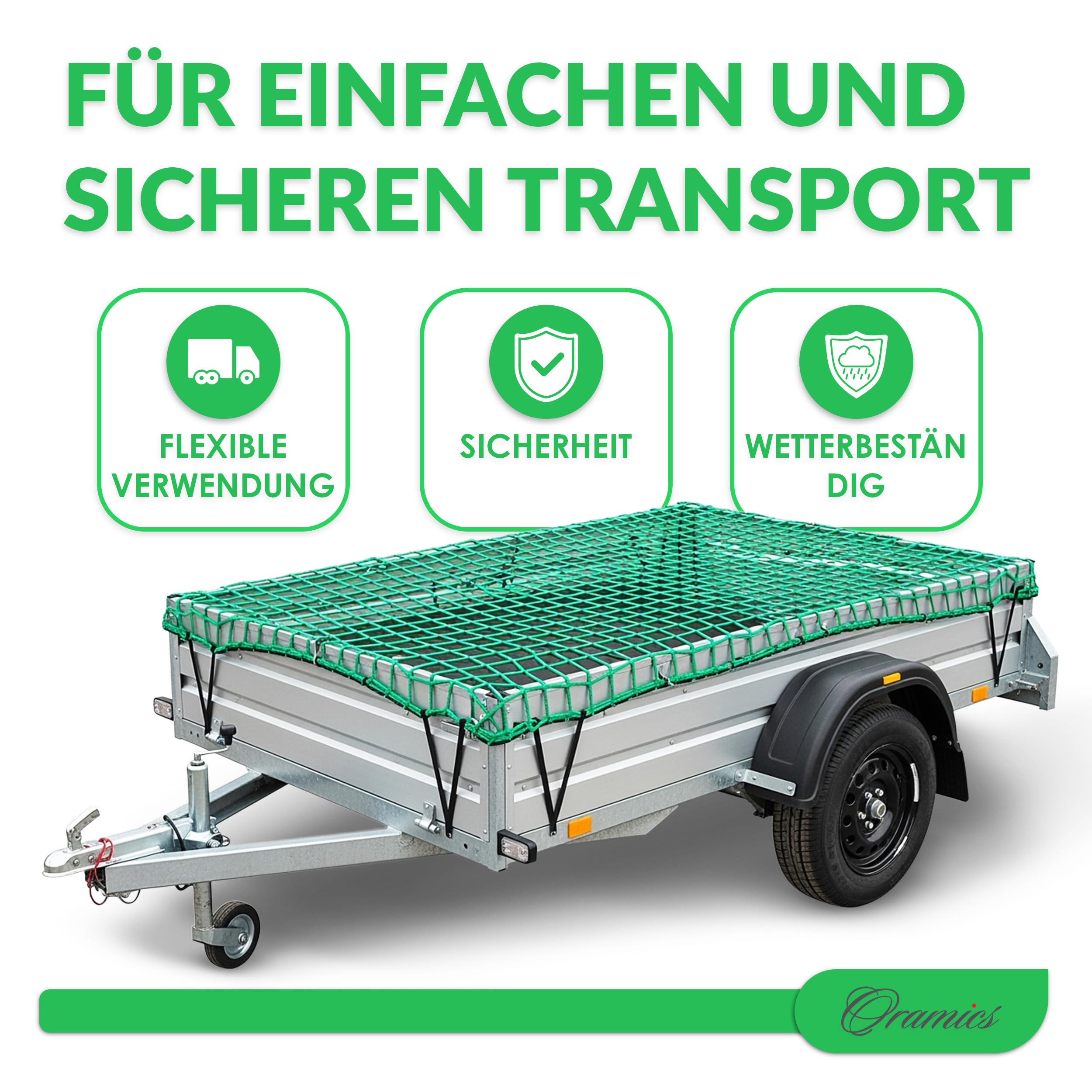 Oramics Anhängernetz 2x3m - Reißfestes Ladungssicherungsnetz Grün
