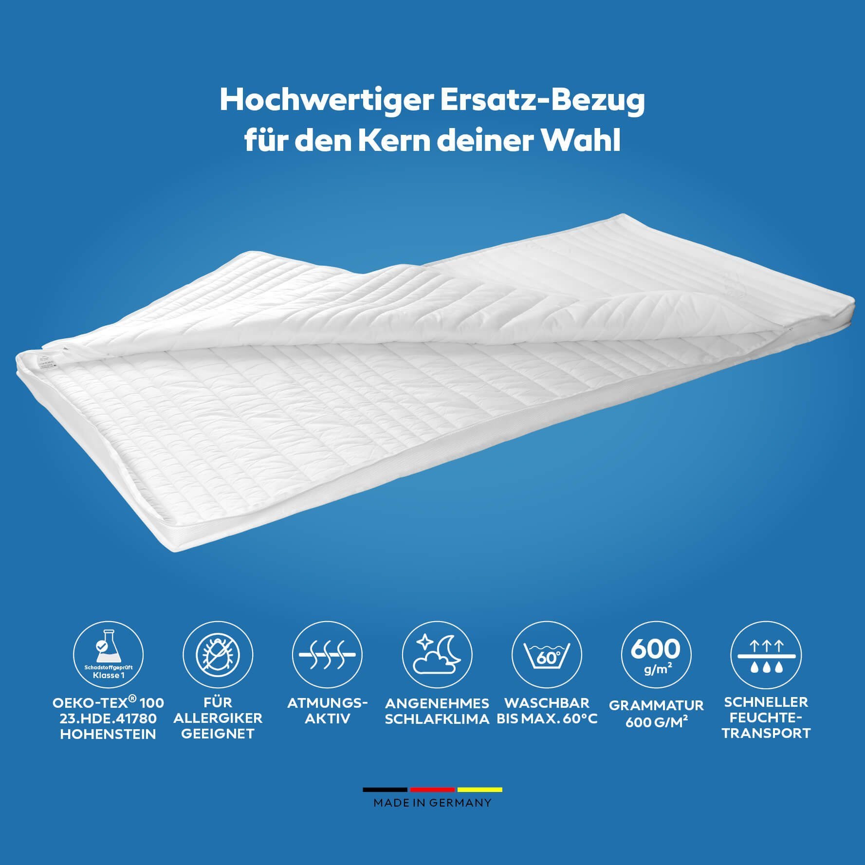 Schlaf dich gesund mit diesem superweichen Tencel-Bezug! Hergestellt aus natürlichen Fasern aus Eukalyptusholz fühlt sich dieser Matratzenbezug an wie ein zweite Haut - mega weich und angenehm kühlend. Die besondere Struktur sorgt für eine gute Luftzirkulation, sodass du nachts nicht schwitzt. Mit den Maßen 180x200cm und 28cm Höhe passt er perfekt auf die meisten Matratzen. Der Reißverschluss läuft an drei Seiten entlang, das macht das Überziehen total einfach. Praktisch: Der Bezug ist bei 40°C waschbar und sogar trocknergeeignet - nach dem Waschen sieht er aus wie neu. So schützt du nicht nur deine Matratze vor Flecken und Verschleiß, sondern verlängerst auch ihre Lebensdauer. Die dreilagige, gesteppte Verarbeitung gibt ein kuscheliges Gefühl und liegt schön stabil auf der Matratze. Einfach mal die Matratze erneuern, ohne gleich eine neue kaufen zu müssen. Für alle, die Wert auf guten Schlaf und Nachhaltigkeit legen!
