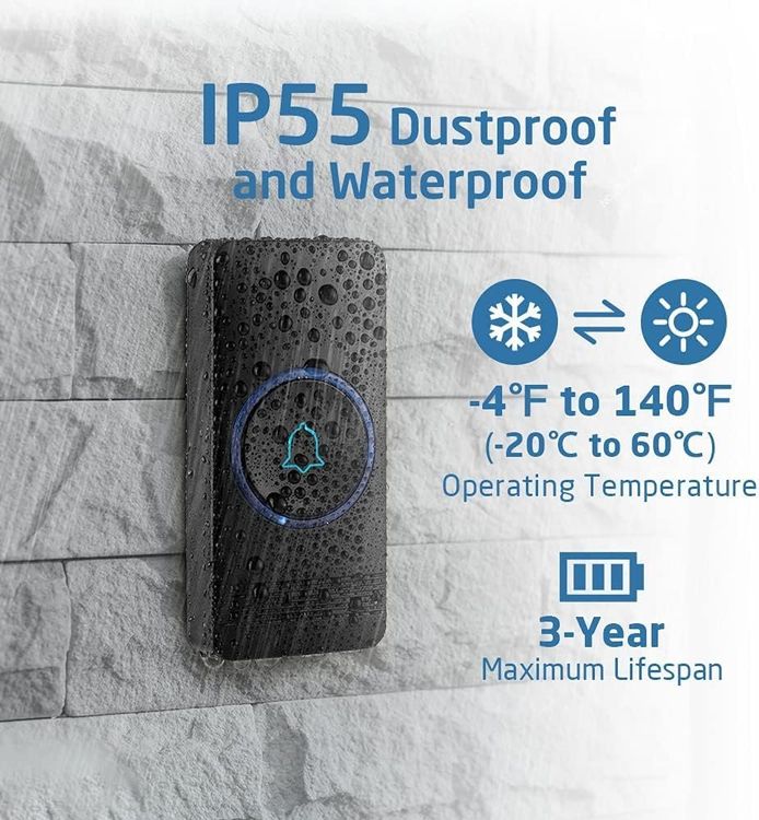 Nie wieder das Klingeln überhört! Diese SECRUI Funkklingel hat satte 400m Reichweite - perfekt für große Häuser oder Gärten. Mit 2 Empfängern hörst du das Klingeln in mehreren Räumen. IP66 wasserdicht, hält sie jedem Wetter stand. 58 verschiedene Melodien und 5 Lautstärkestufen - da findet jeder seinen Lieblingston. Einfache Installation ohne Kabel: Klingel außen anbringen, Empfänger in die Steckdose stecken, fertig! Mit LED-Blitz für Hörgeschädigte. Modernes Design, das zu jedem Haus passt. Endlich Freiheit, ohne auf Besuch warten zu müssen. Einfach genial, oder?