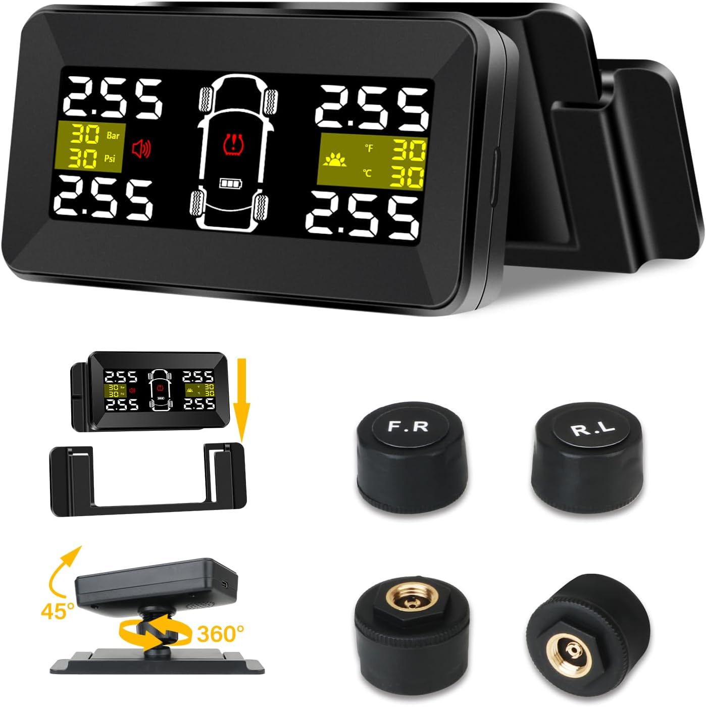 OBEST Bluetooth Reifendruck-Monitor Mit 4 Externen Sensoren - TPMS Für Auto & Motorrad