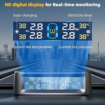 Sicherheit geht vor! Dieses TPMS überwacht permanent den Druck deiner Reifen. Mit 4 externen Sensoren, die sich in 2 Minuten montieren lassen - kein Reifenausbau nötig! Zeigt Druck und Temperatur in Echtzeit an und warnt bei Problemen. Lädt per Solar oder USB - immer betriebsbereit. Die Sensoren sind wasserdicht (IPX7) und halten extremen Temperaturen stand. Automatischer Schlafmodus spart Energie. Passt für die meisten Autos, SUVs und Wohnmobile mit 0-5 Bar. Mit 5 Alarmmoden für niedrigen/hohen Druck, Überhitzung, Lecks und niedrige Batterie. Fahre beruhigt und spare dabei noch Sprit!