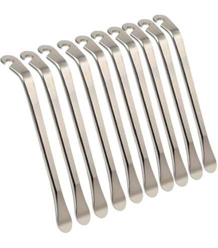 Einfacher Reifenwechsel für dein Fahrrad! Diese robusten Reifenheber aus Kohlenstoffstahl machen das Reparieren zum Kinderspiel. Mit abgeschrägter Spitze für einfaches Ansetzen und Haken zur Speichenbefestigung. Die glatten Oberflächen schützen deine Reifen vor Beschädigung. Klein, leicht und perfekt für unterwegs. Ideal für MTB, BMX, Rennrad oder E-Scooter. Nie wieder kämpfen mit fest sitzenden Reifen - mit diesen Hebern geht's leicht!