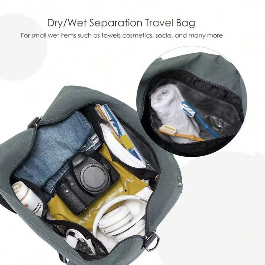 Perfekt für alle, die viel unterwegs sind: Diese AAFGVC Reisetasche ist ein echter Allrounder! Sie lässt sich super einfach zusammenfalten und nimmt kaum Platz weg - ideal also als Handgepäck für Flugreisen oder für spontane Trips. Das coole Feature: Die integrierte Nass-Trocken-Trennung sorgt dafür, dass nasse Badesachen oder schmutzige Wäsche nicht mit den trockenen Sachen in Berührung kommen. So bleibt alles ordentlich und hygienisch! Die Tasche in dem modernen 'Nebligen Blau' sieht nicht nur stylisch aus, sondern ist auch aus hochwertigem Material gefertigt, das tägliche Belastungen problemlos aushält. Ob Wochenendtrips, Städtetouren oder Tagesausflüge - diese Tasche ist immer die richtige Wahl. Der praktische Stauraum bietet Platz für alles Nötige, ohne dass die Tasche unhandlich wird. Leicht, robust und super funktional - genau das, was man von einer guten Reisetasche erwartet. Mach deine Reisen organisiert und stressfrei - mit dieser cleveren Tasche, die Optik und Funktionalität perfekt vereint!
