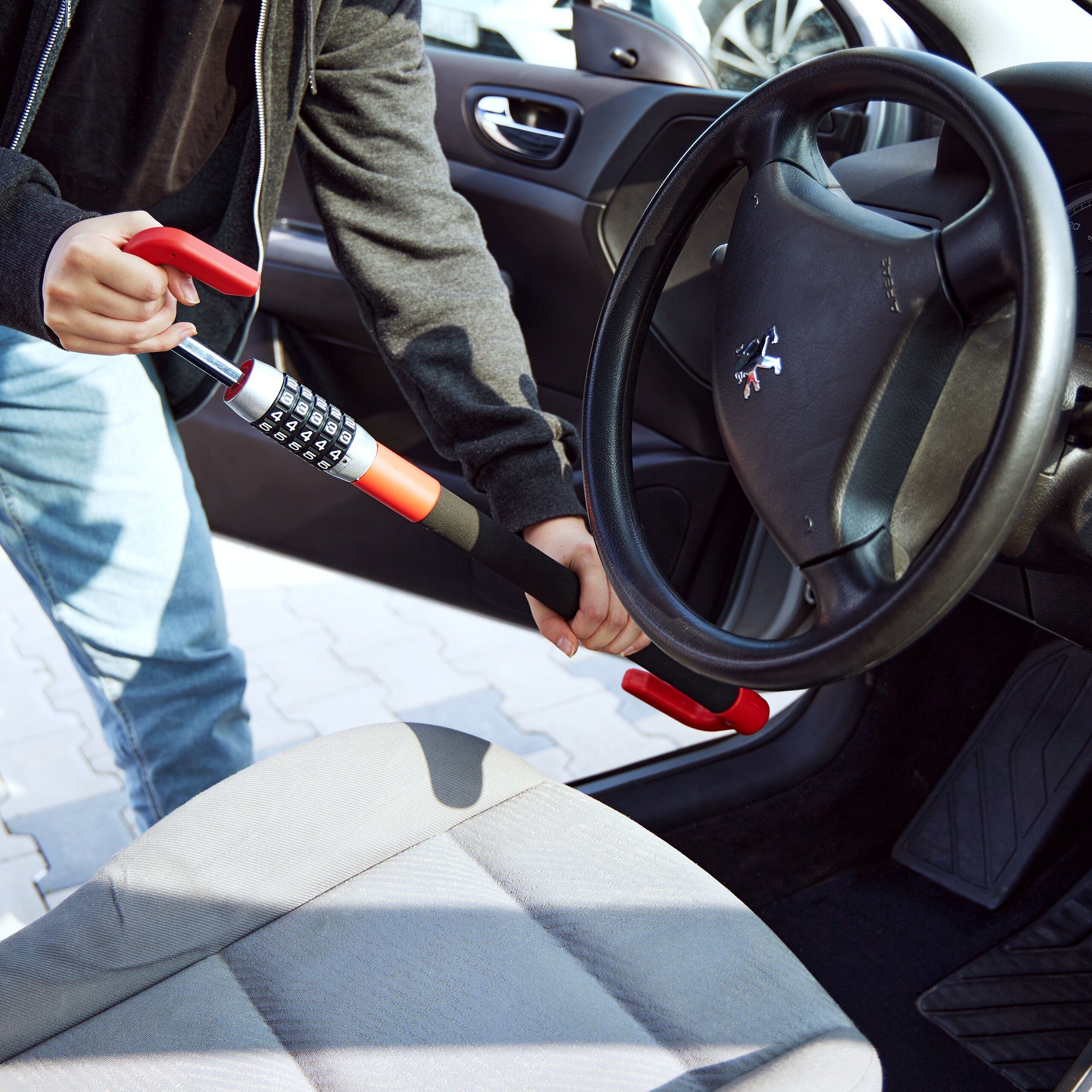 Relaxdays Lenkradschloss Für PKW - Diebstahlschutz Mit Stahlseil, Universal Für Auto & Wohnmobil