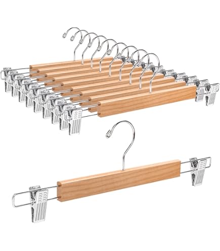 Platzprobleme im Schrank? Unser 36er Set Holzbügel von Relaxdays schafft Abhilfe! Aus lackiertem Ahornholz gefertigt, sehen die Bügel nicht nur klasse aus, sondern sind auch super stabil. Die 360° drehbaren Haken sind mega praktisch - da hängt nichts mehr schief! Mit den zwei Kerben rutschen auch Röcke und Hosen nicht mehr runter. Jeder Bügel misst 22,5x44,5 cm und hat nen 41 cm langen Steg. Perfekt also für Jacken, Mäntel, Blusen - einfach alles was in den Schrank gehört. Das Set ist ideal wenn mal viele Gäste kommen oder du einfach Ordnung in deinen Kleiderschrank bringen willst. Die einheitliche Optik sieht einfach viel edler aus als dieses bunte Durcheinander von verschiedenen Bügeln. Einfach auspacken und sofort mehr Ordnung im Schrank!